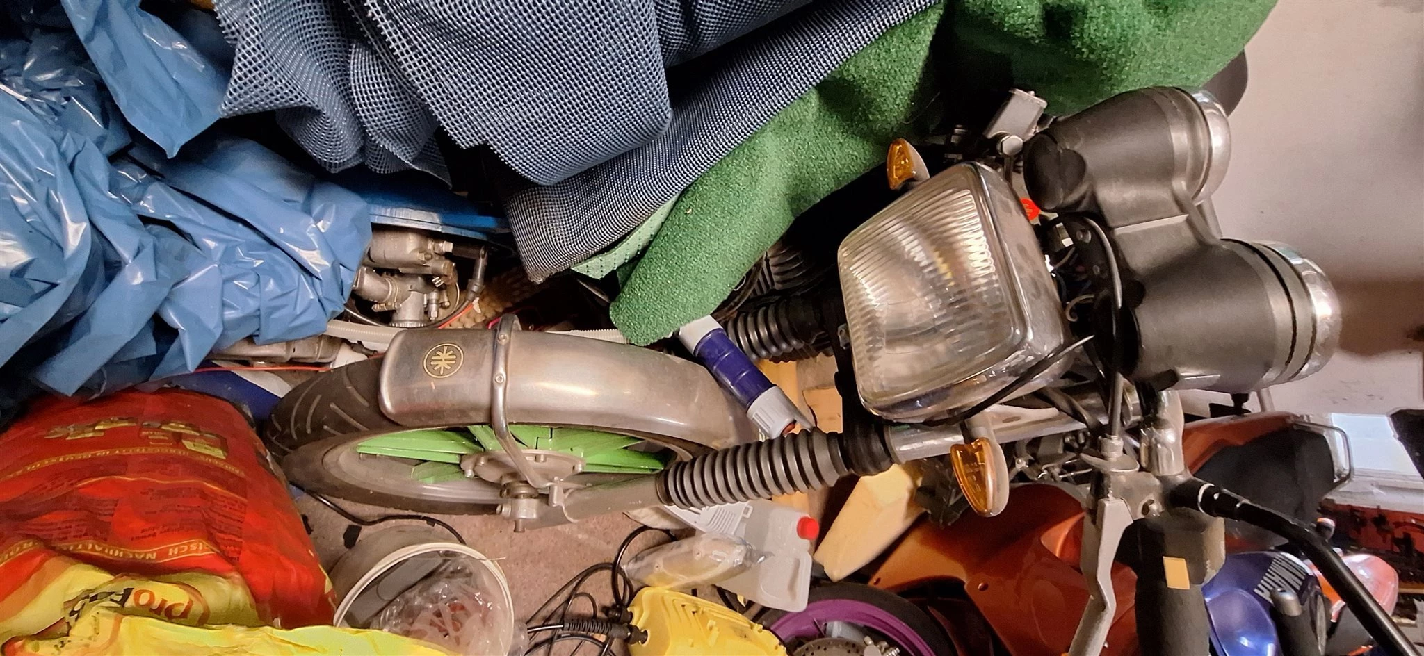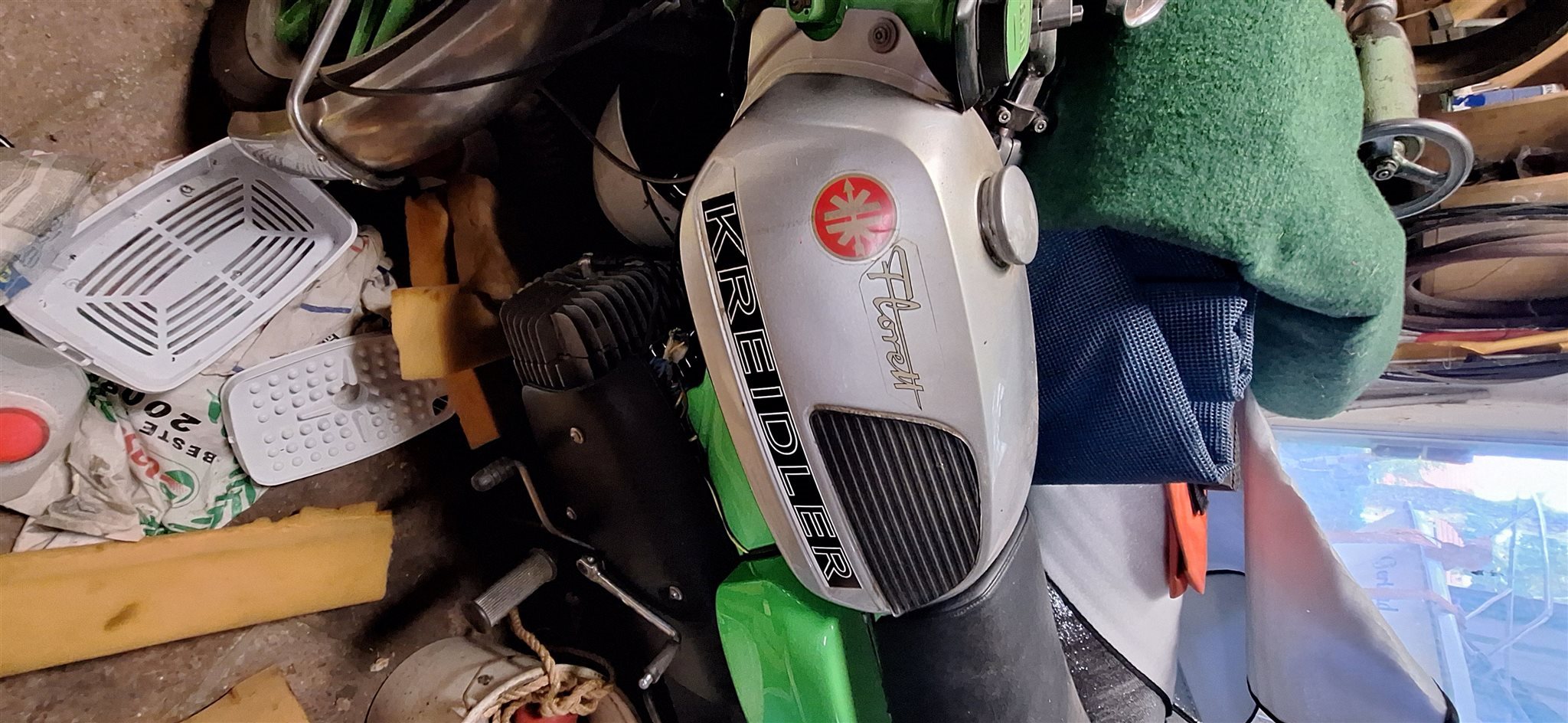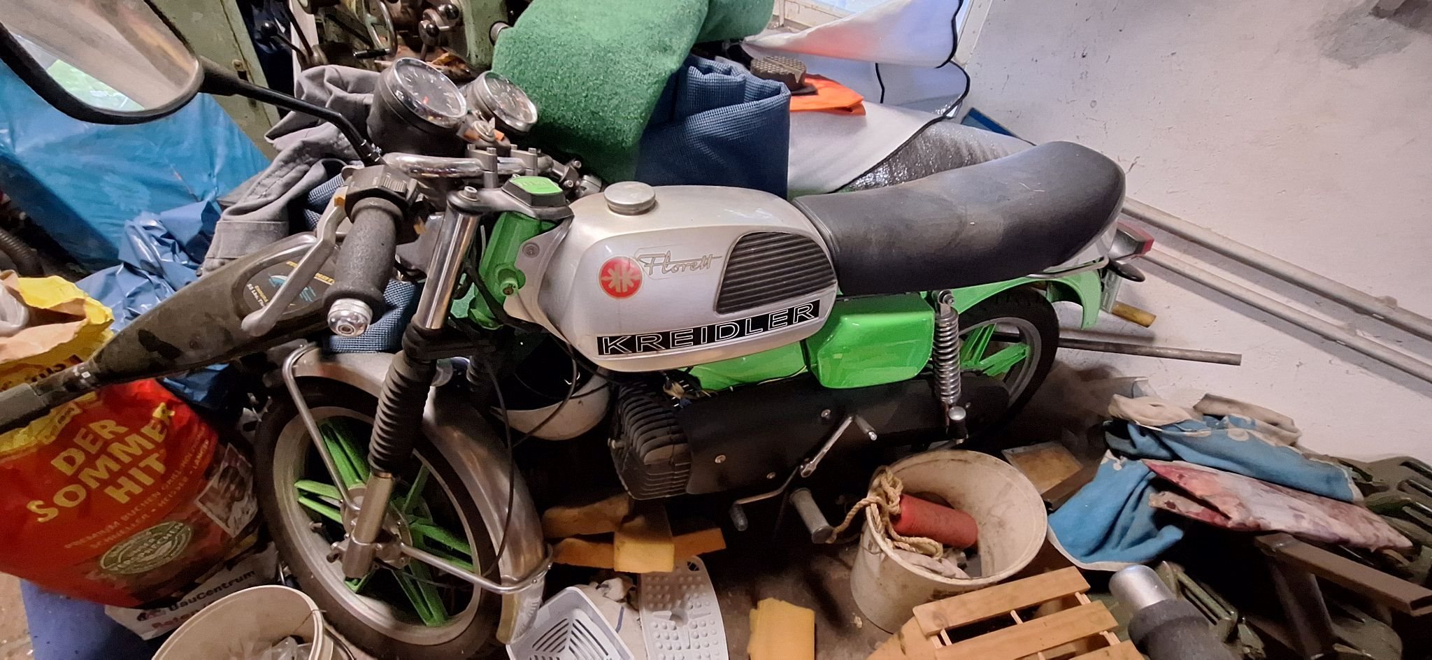 Mangels Fahrzeugschein können wir sie nicht genau bestimmen. Den Kilometerstand auch gerade nicht, da die Batterie ausgebaut ist. Sie ist fahrbereit muss nur angemeldet werden. Sie steht in einer Garage und ist abgedeckt.