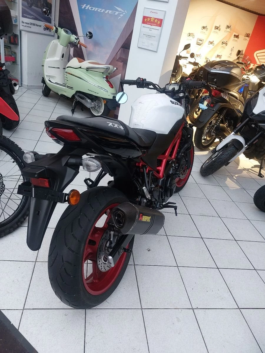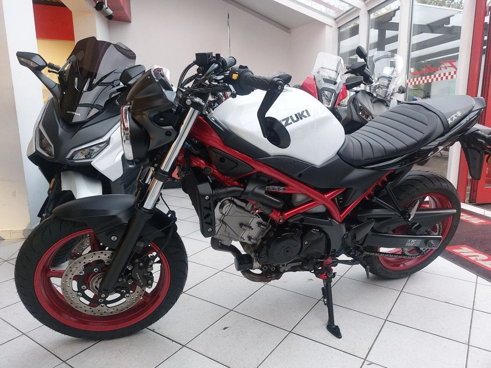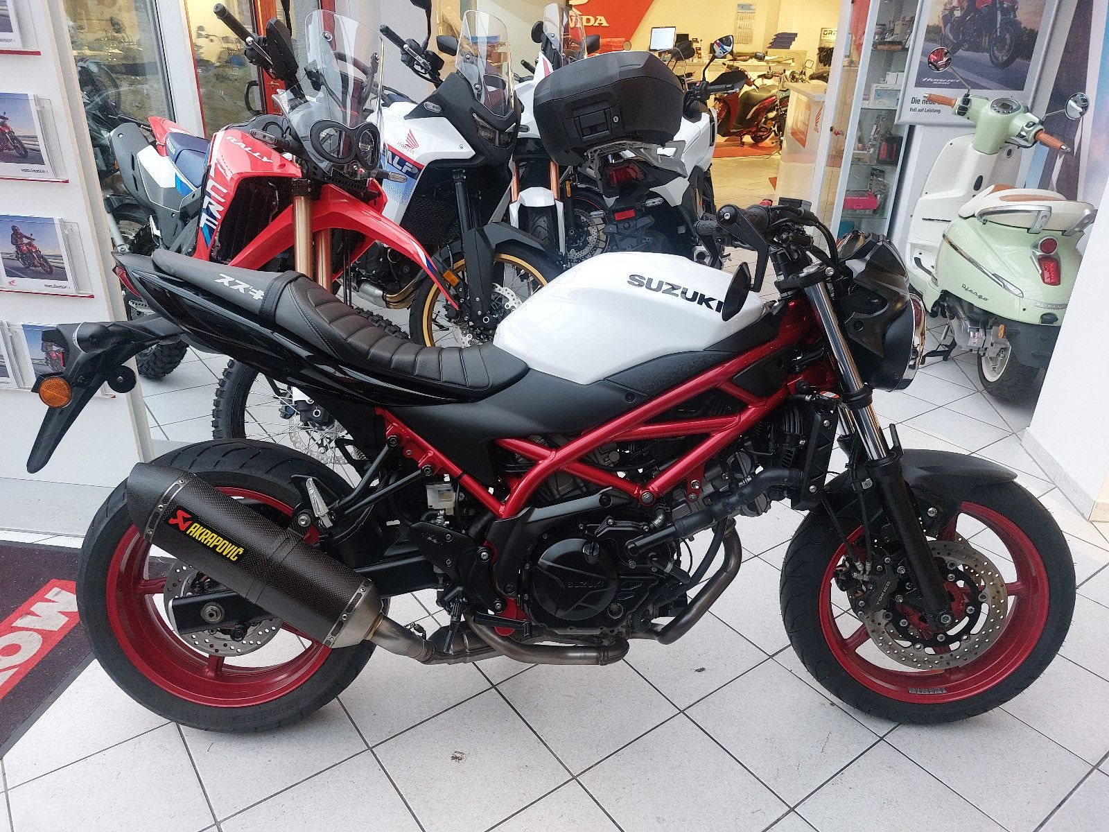 Suzuki SV650, Gebrauchtfahrzeug, Lenkerendspiegel, verstellbare Brems- und Kupplungshebel, Akrapovic Endschallldämpfer, Mini-LED Blinker vorne, Sportsitzbank, Reifen vorne neu, frische Inspektion mit Öl- und Bremsflüssigkeitswechsel.