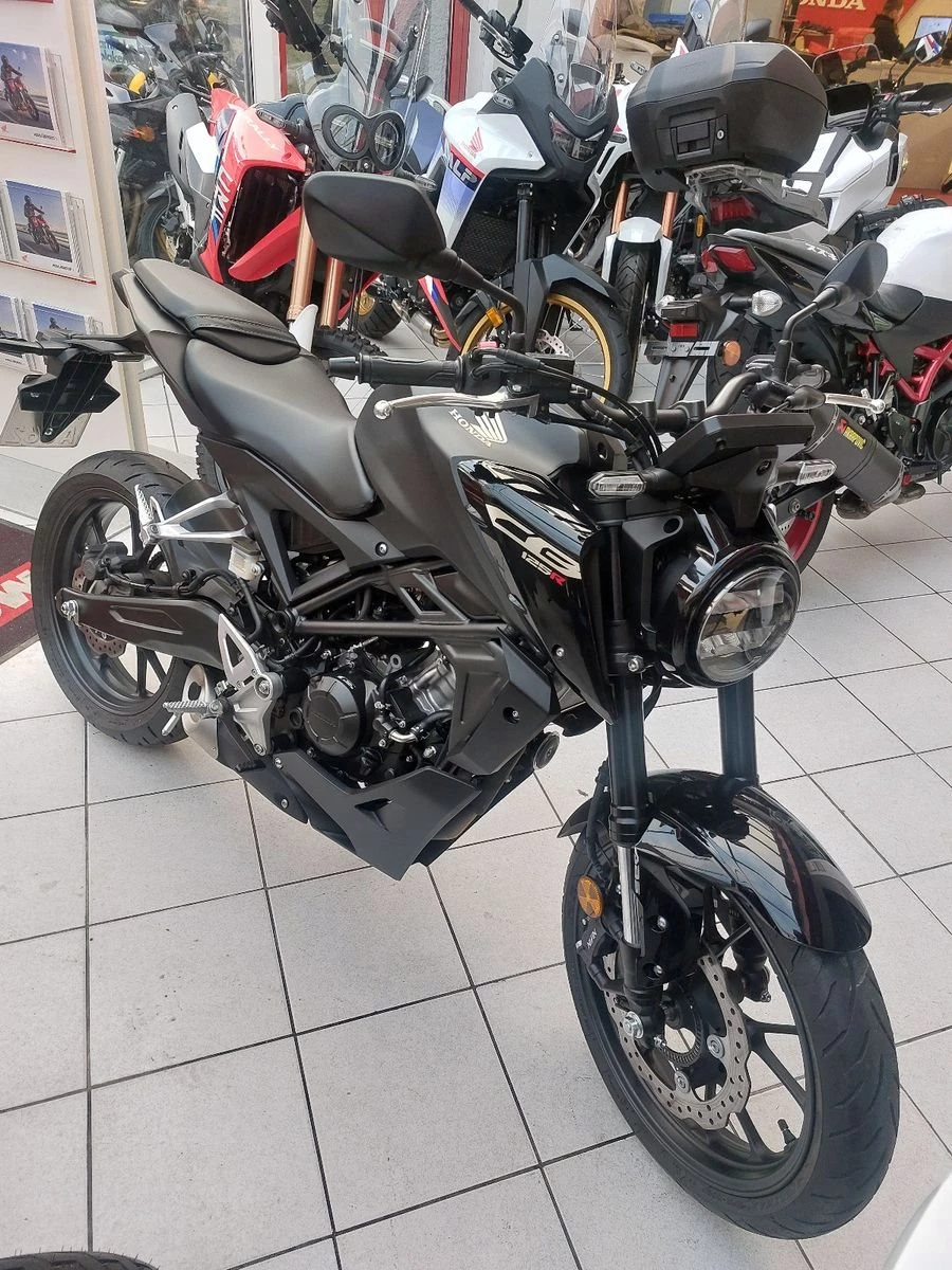 Honda CB125R, Gebrauchtfahrzeug, unfallfrei, geringe Laufleistung, 1000 Km - Inspektion inklusive, der DOHC-Einzylindermotor mit 4 Ventilen liefert volle 11KW (15PS), das Neo Sports Café Design begeistert Jung und Alt, Das markante Design mit dem Stahlrohrrahmen ist ein echtes Statement. Ein hochmodernes 5 Zoll TFT-Farb Display und LED-Komplettbeleuchtung sind Premium-Merkmale. Die präzise Abstimmung der neuen Showa SFF-Big Piston Upside Down-Gabel begeistert. Die CB125R setzt voll auf Minimalismus und bringt von Fahrt zu Fahrt mehr Fahrspaß. Dank der kompakten Größe ist das Bike leicht zu handhaben und die von den größeren Modellen übernommenen Merkmale sorgen für einen perfekten Einstieg in die Welt richtiger Motorräder. Gewicht vollgetankt 130 kg, 150/60R17 Hinterreifen, 6-Gang Getribe, Tankinhalt 10,1 Liter, CO2 g/km kombiniert (g/km) 50 g/km Benzinverbrauch (Liter pro 100 km (Honda Messwerte gem. WMTC)) 2,2 l/100km, Abgasnorm Euro 5+, Kfz-Steuer frei.