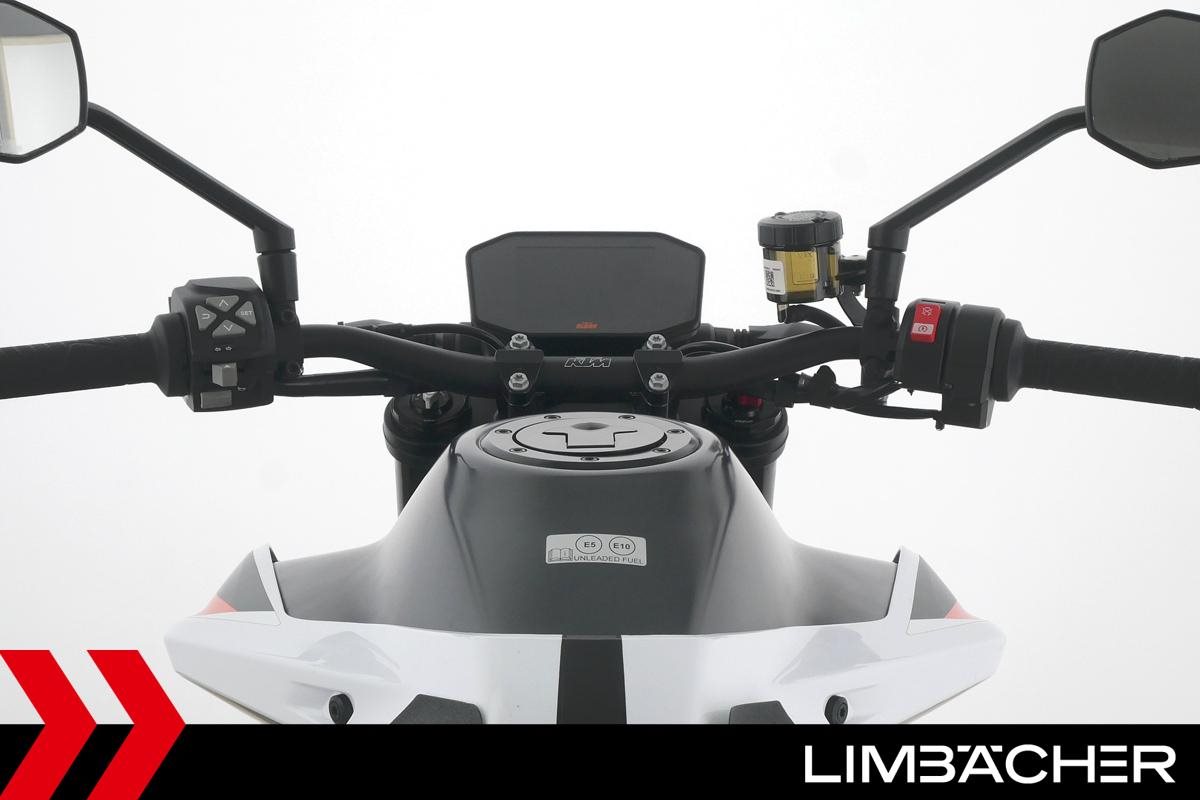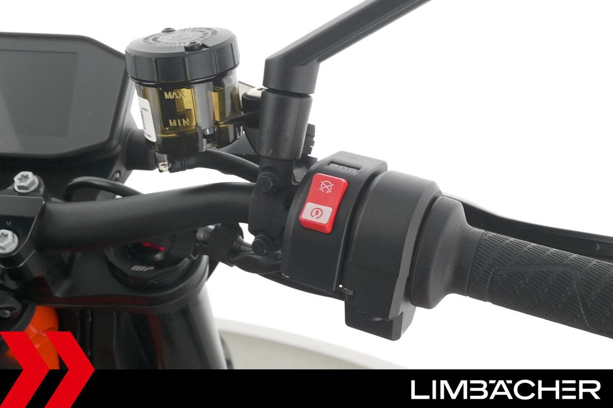 Eine KTM 890 Duke R aus zweiter Hand in gepflegtem Zustand u.a. mit Akrapovic-Endschalldämpfer sowie kurzem Kennzeichenhalter.