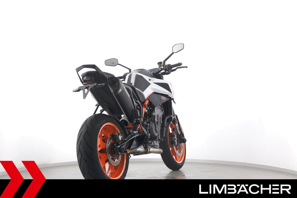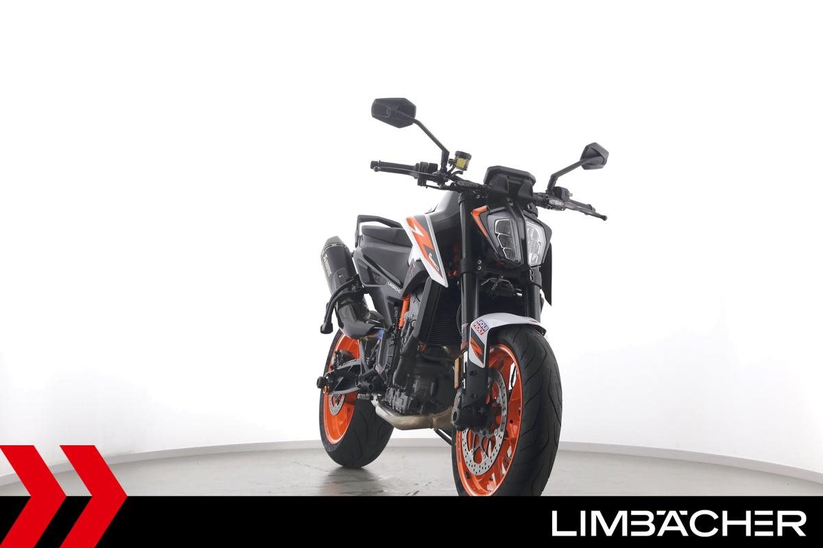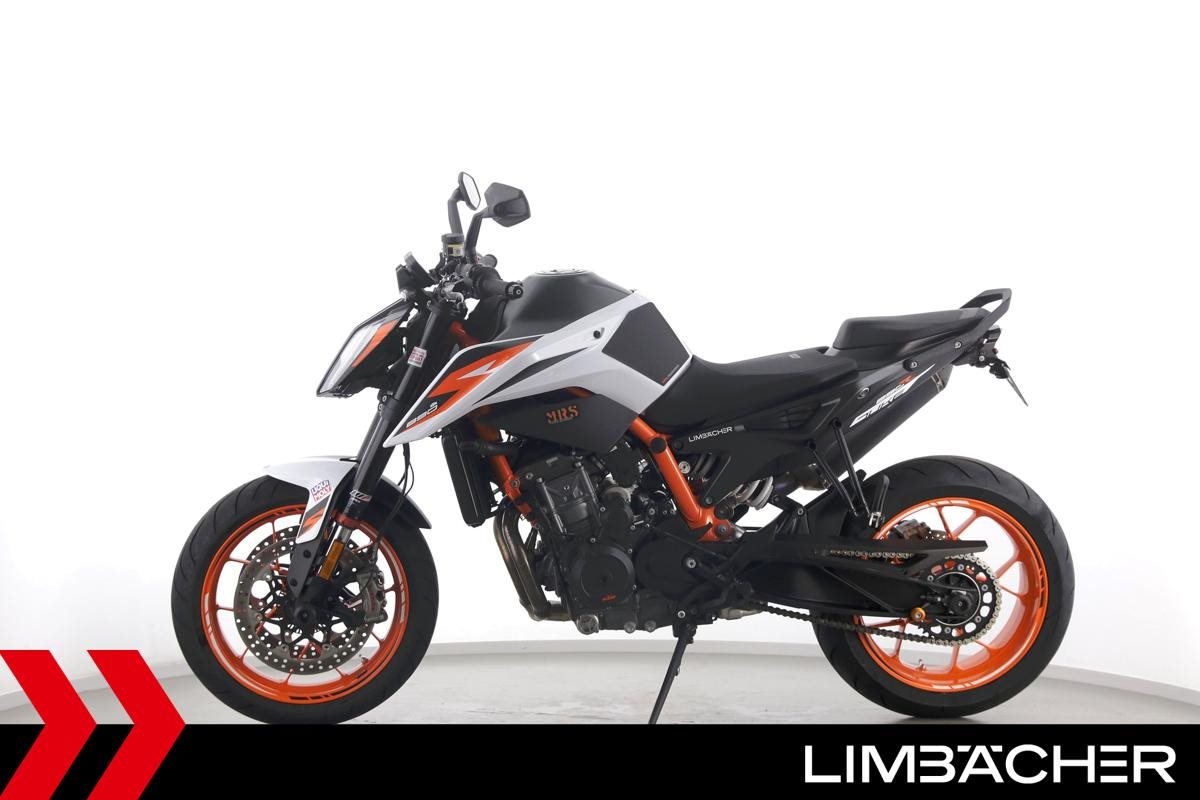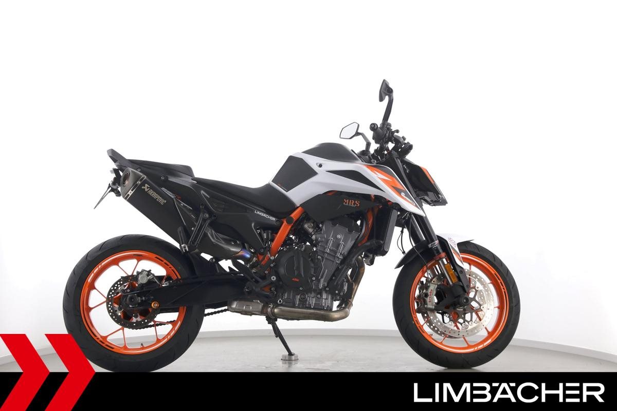 Eine KTM 890 Duke R aus zweiter Hand in gepflegtem Zustand u.a. mit Akrapovic-Endschalldämpfer sowie kurzem Kennzeichenhalter.