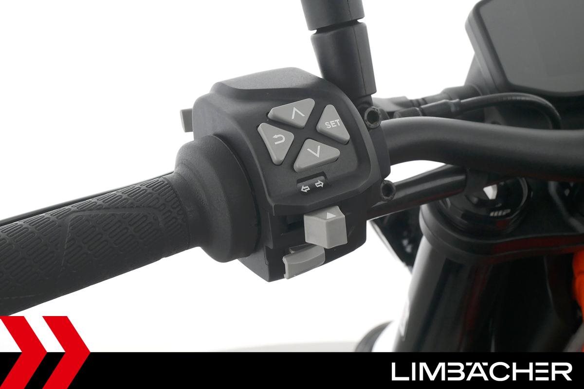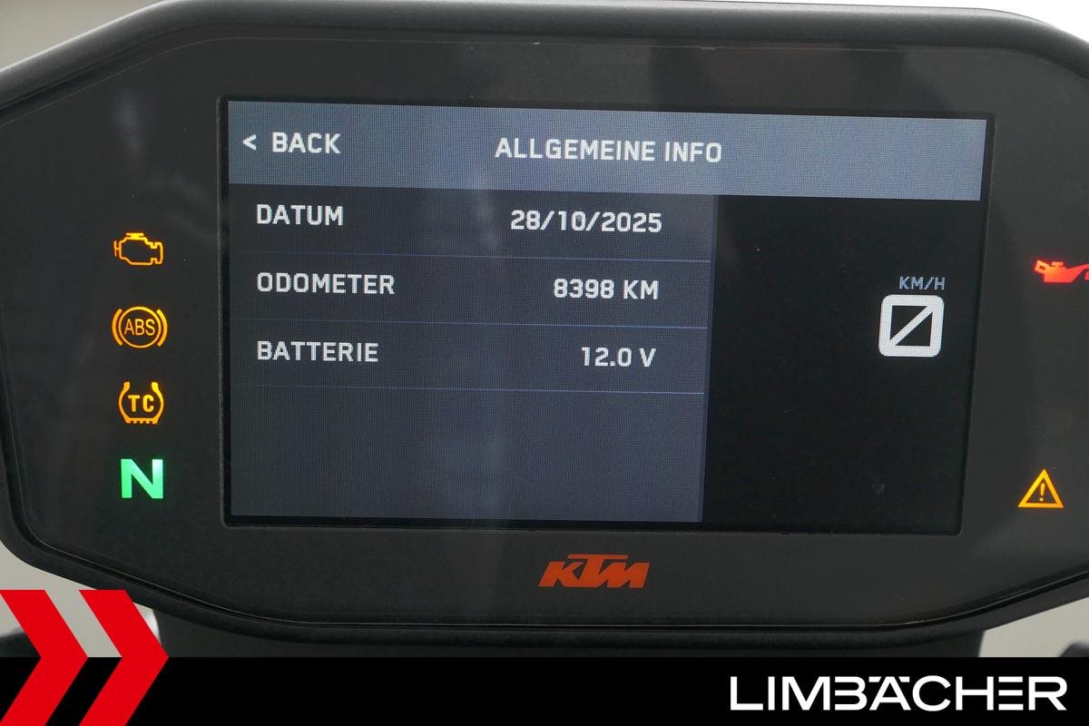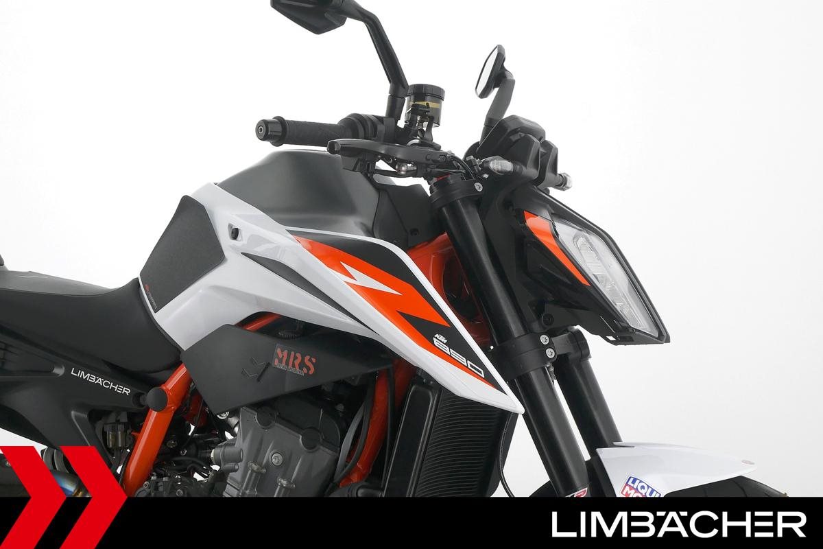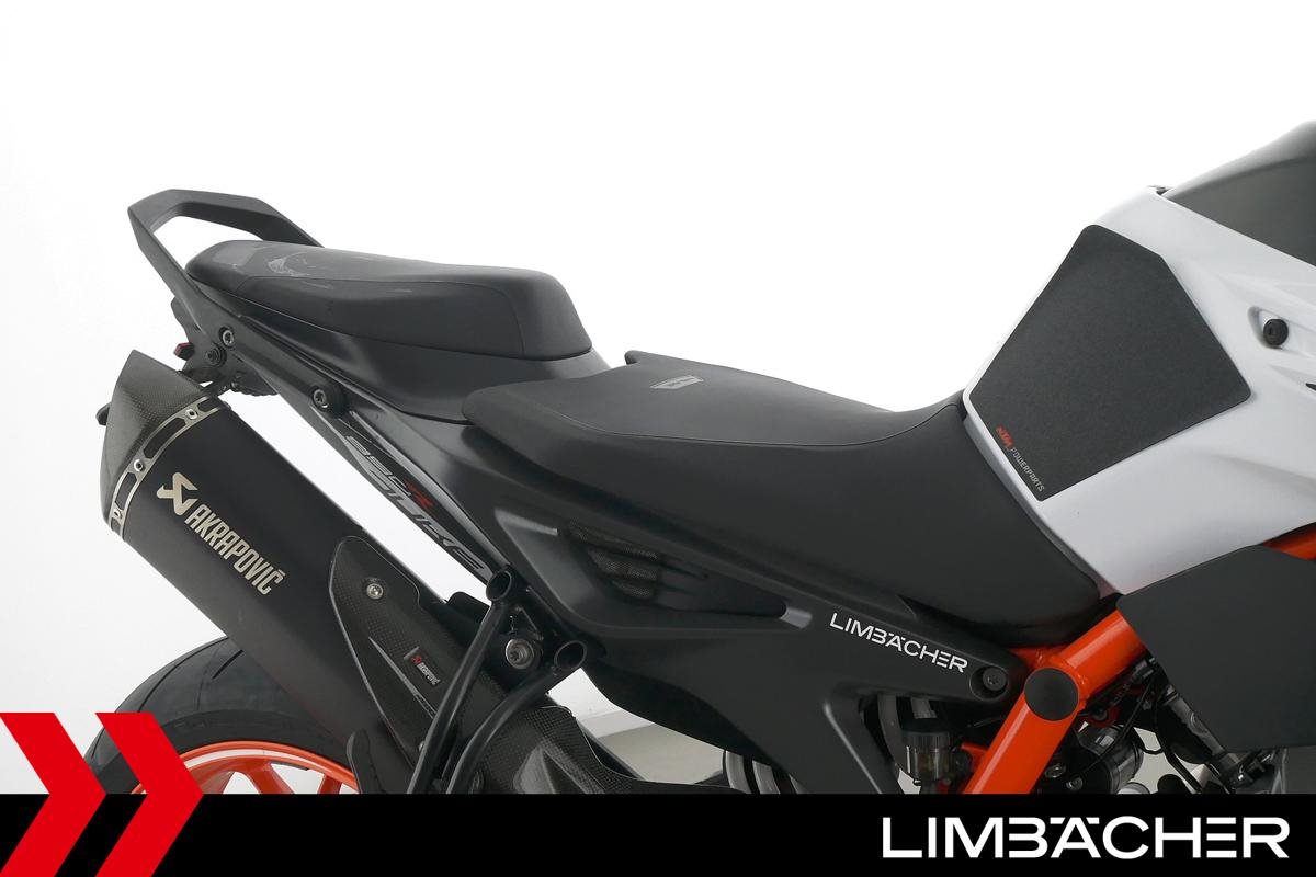 Eine KTM 890 Duke R aus zweiter Hand in gepflegtem Zustand u.a. mit Akrapovic-Endschalldämpfer sowie kurzem Kennzeichenhalter.
