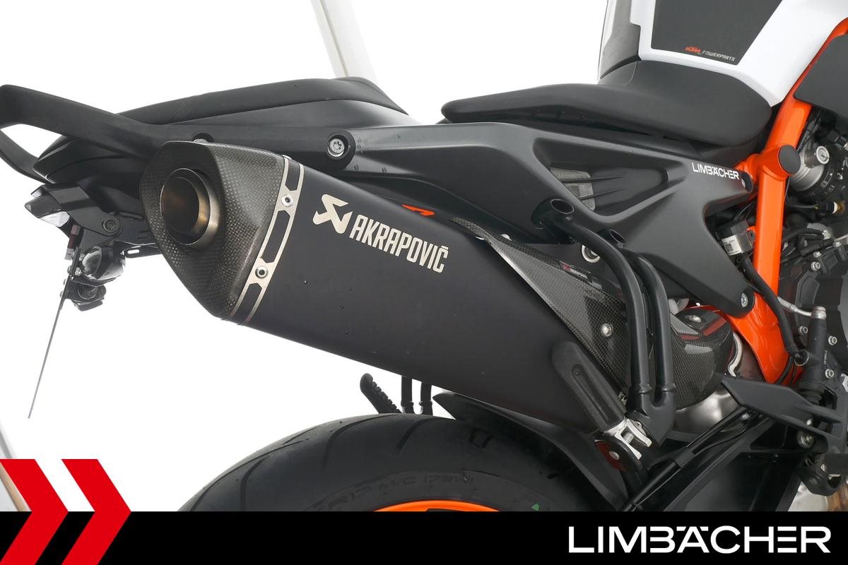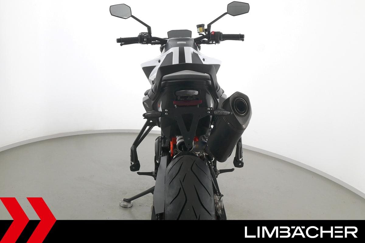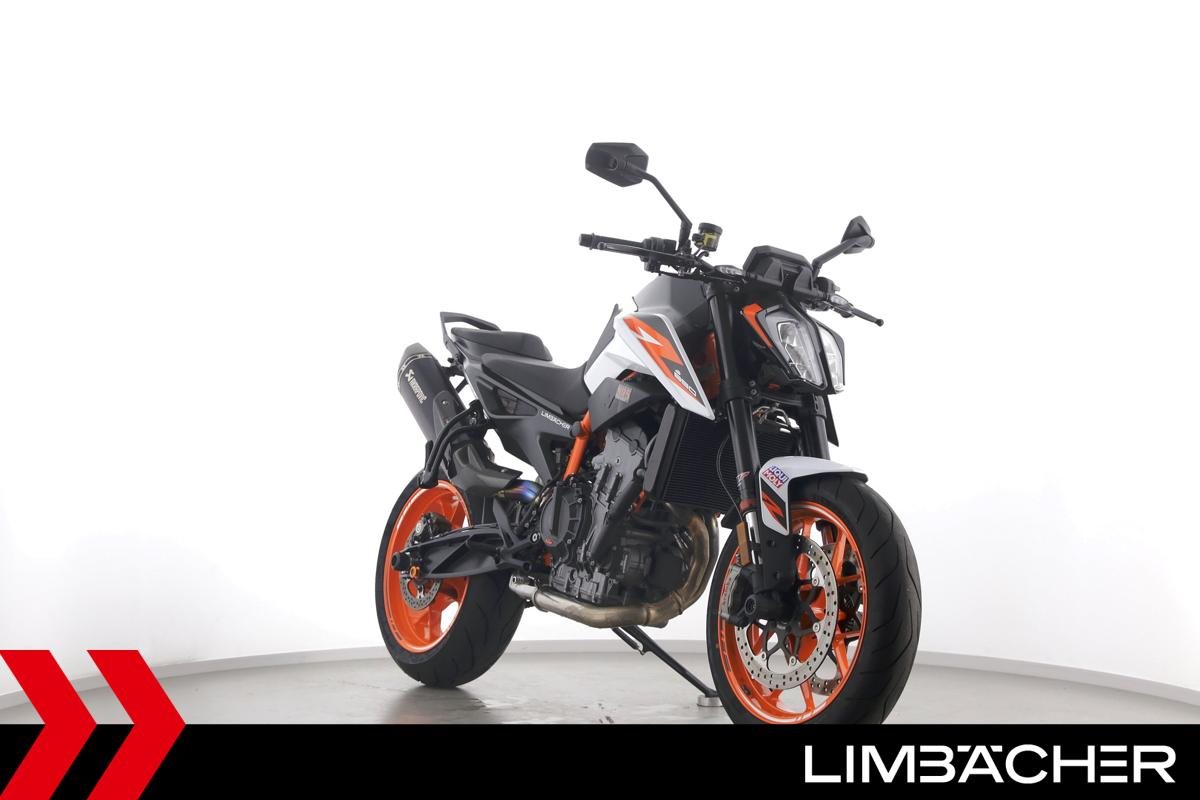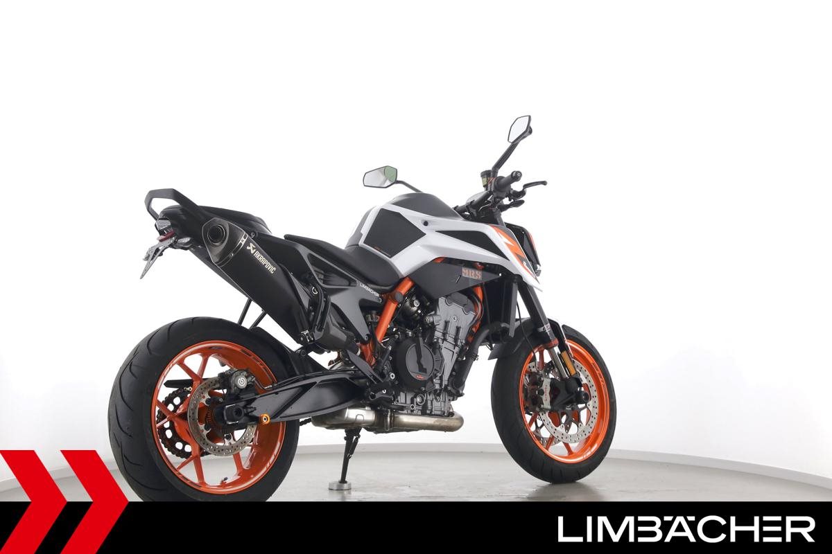 Eine KTM 890 Duke R aus zweiter Hand in gepflegtem Zustand u.a. mit Akrapovic-Endschalldämpfer sowie kurzem Kennzeichenhalter.