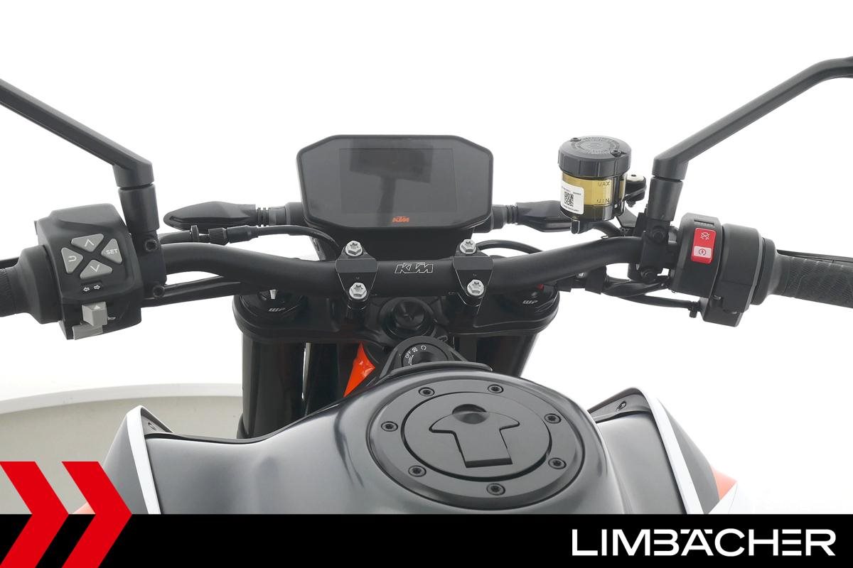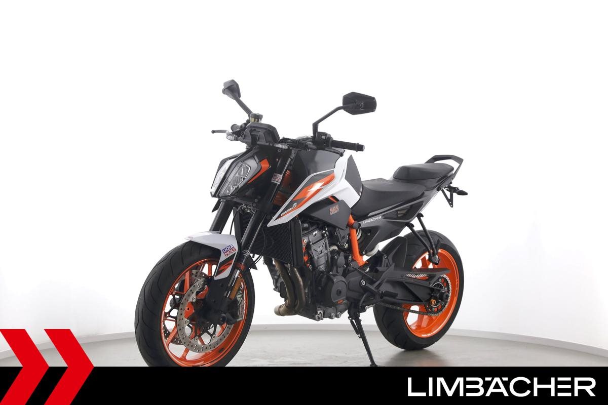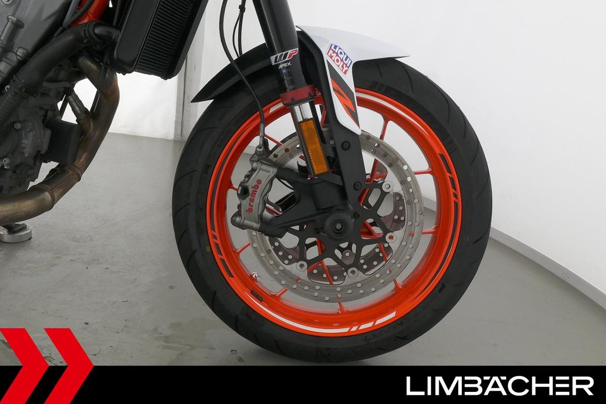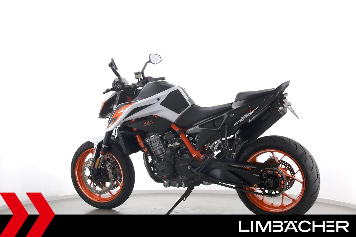 Eine KTM 890 Duke R aus zweiter Hand in gepflegtem Zustand u.a. mit Akrapovic-Endschalldämpfer sowie kurzem Kennzeichenhalter.