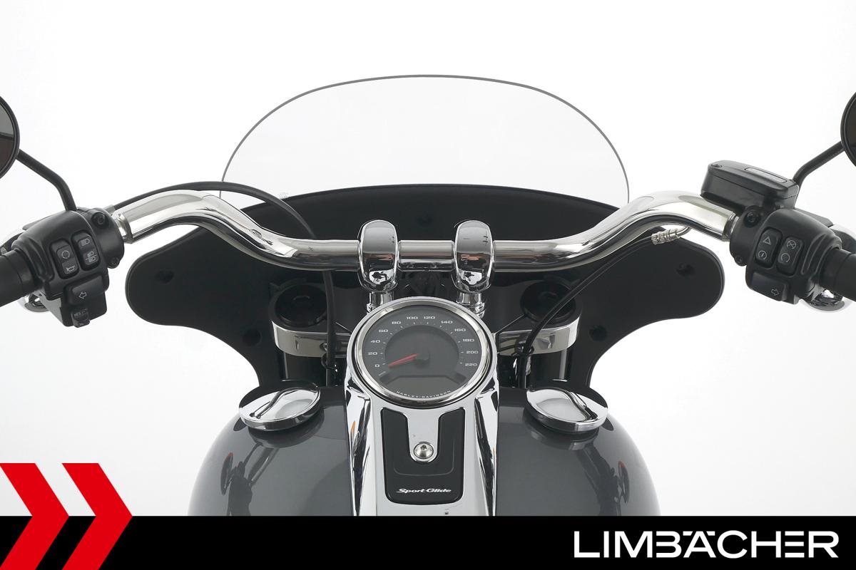 Eine scheckheftgepflegte Harley-Davidson Softail Sport Glide FLSB aus zweiter Hand in sehr gepflegtem Zustand u.a. mit HD-Koffersystem gleichschließend sowie Tempomat.
