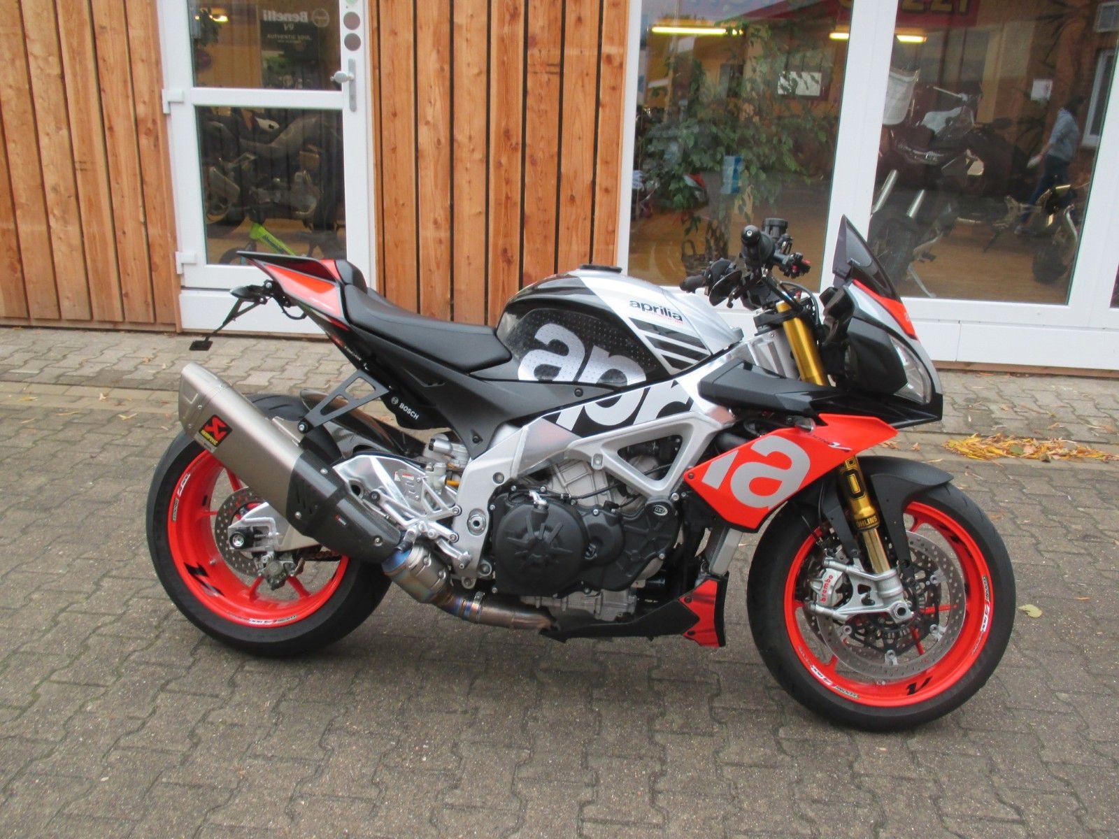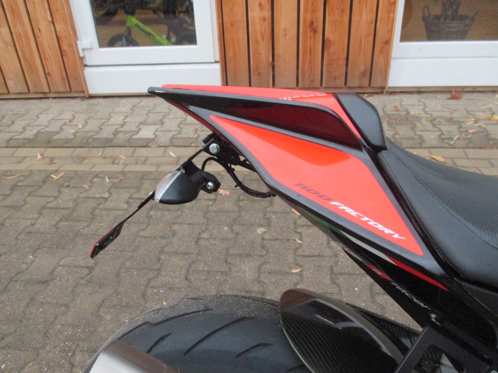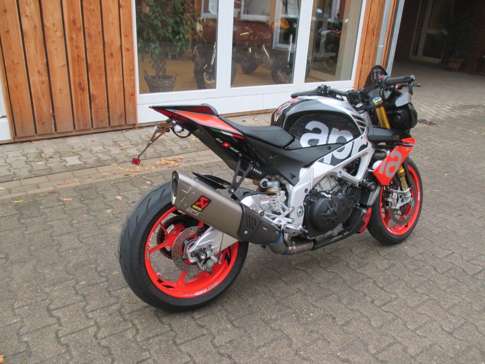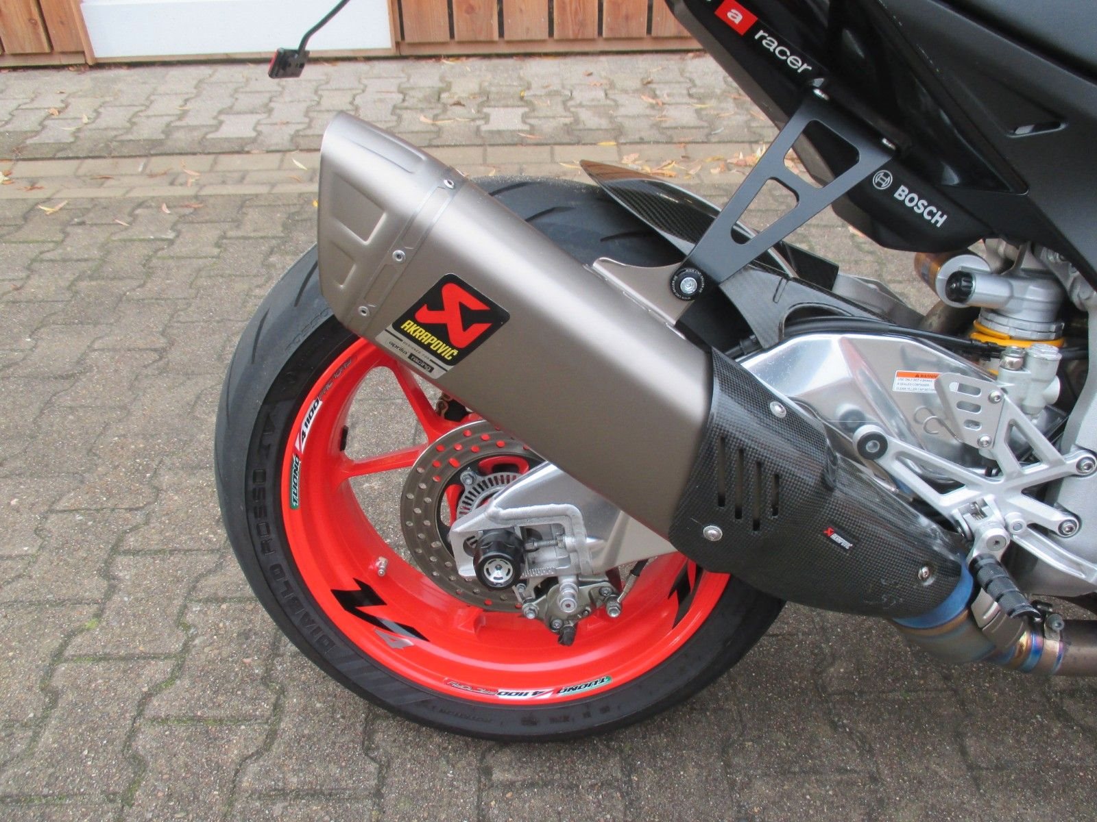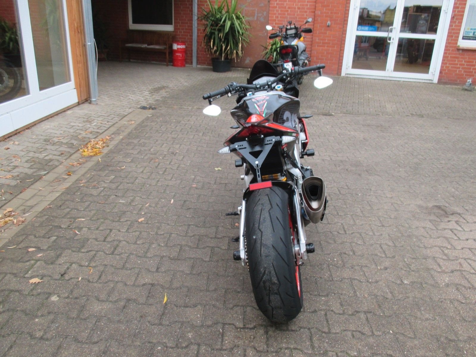 mit Akrapovic Auspuff, kurzer Kennzeichenhalter, Lenkererhöhung, Lenkerendenspiegel, Carbon Heck Fender, einstellbare Hebel, Puig Windschild,