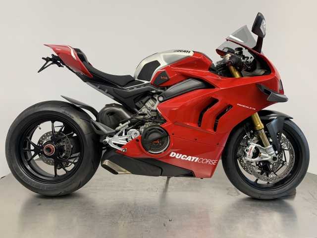 Bildschöne Panigale V4 R mit umfangreicher Serienausstattung, verbaut sind zusätzlich noch viele Carbonteile als Tankabdeckung, Zündschlossabdeckung, Rahmen- und Heckrahmenabdeckung, Zylinderschutz, Kotflügel, Hinterradabdeckung, Schwingenschutz, Winglets und Kupplungsdeckel sowie eine Fußrastenanlage von Rizoma (Ducati Zubehör).