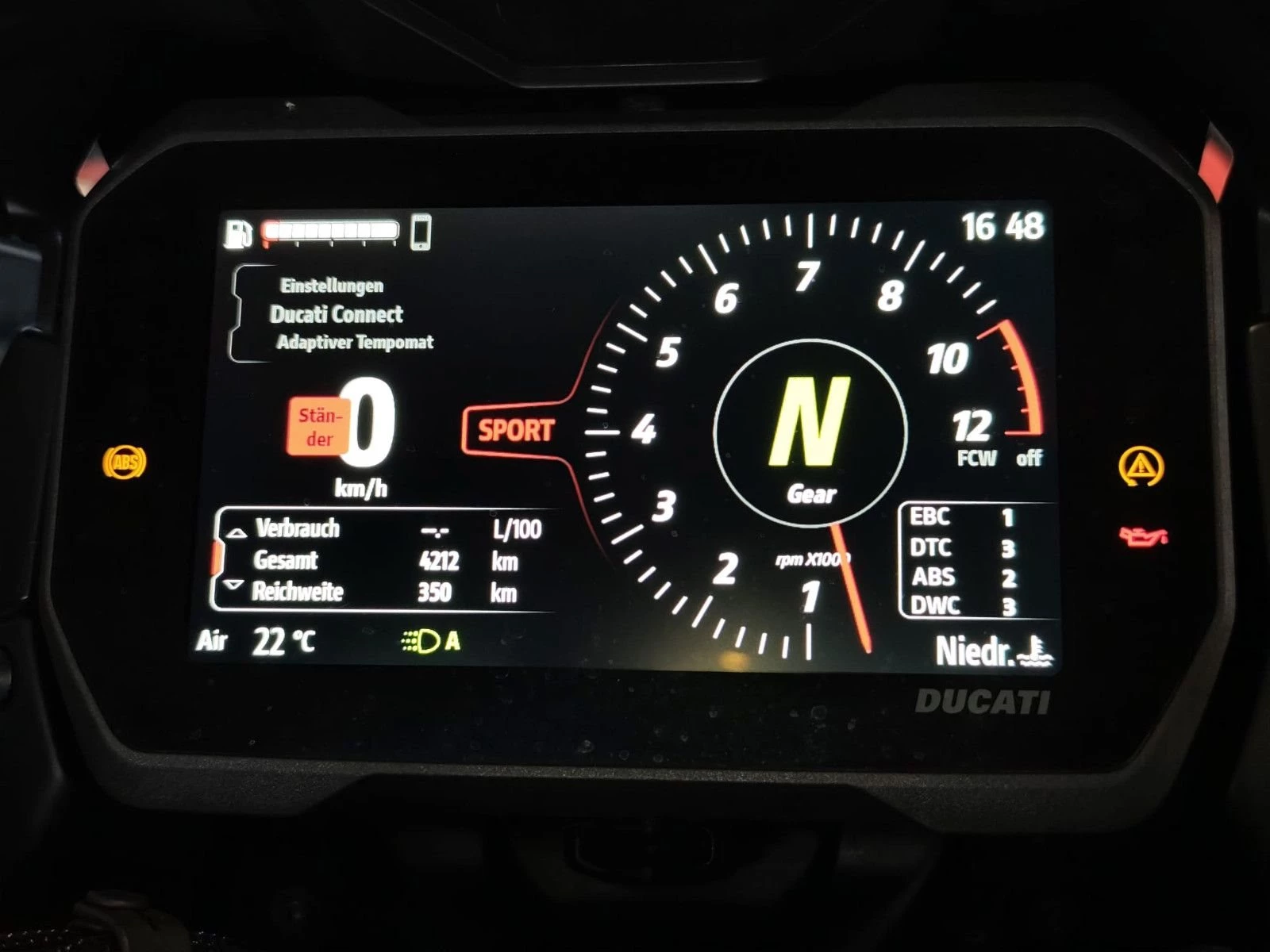 - Ducati Quickshifter Up/Down, Traktionskontrolle & Kurven-ABS
