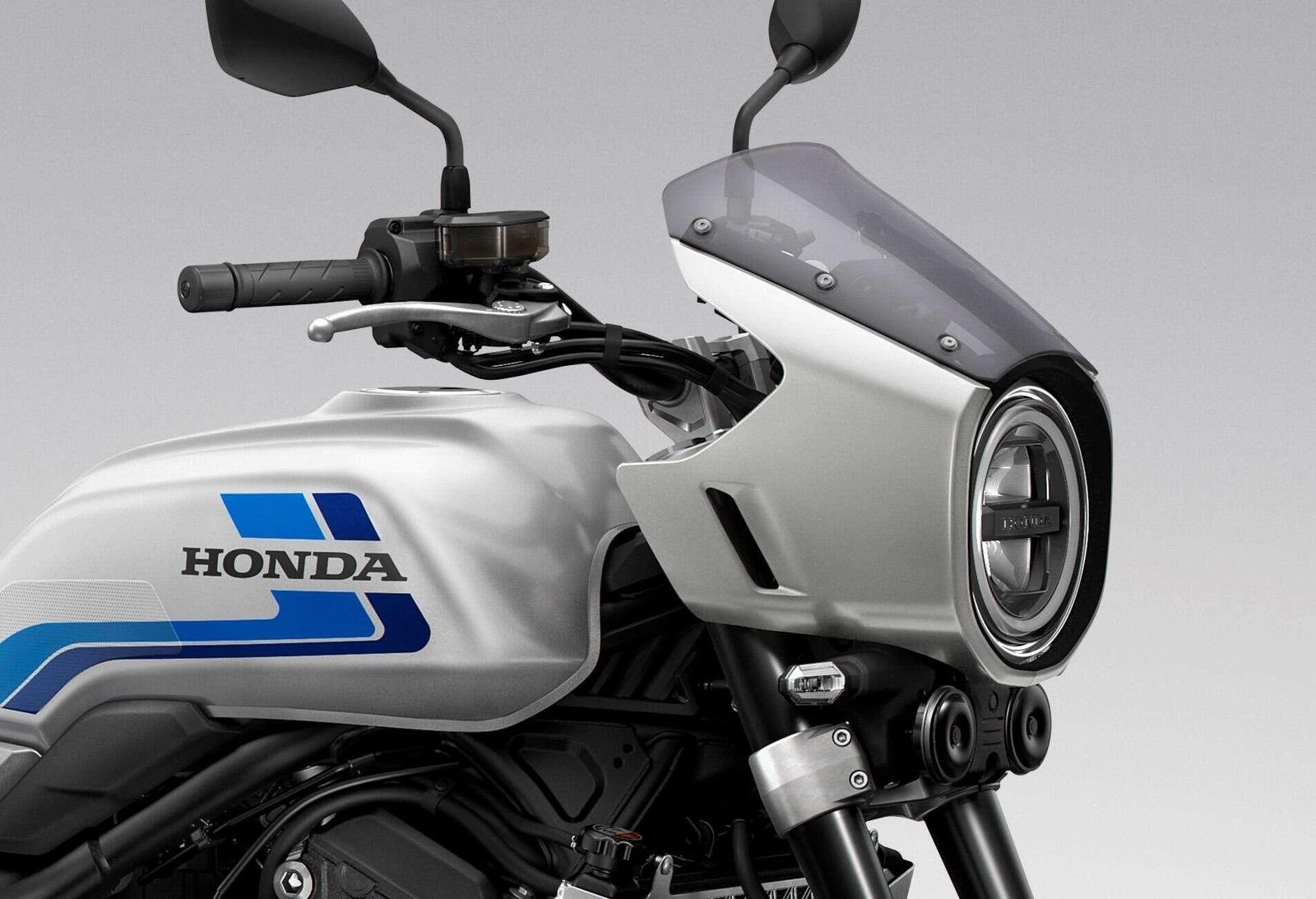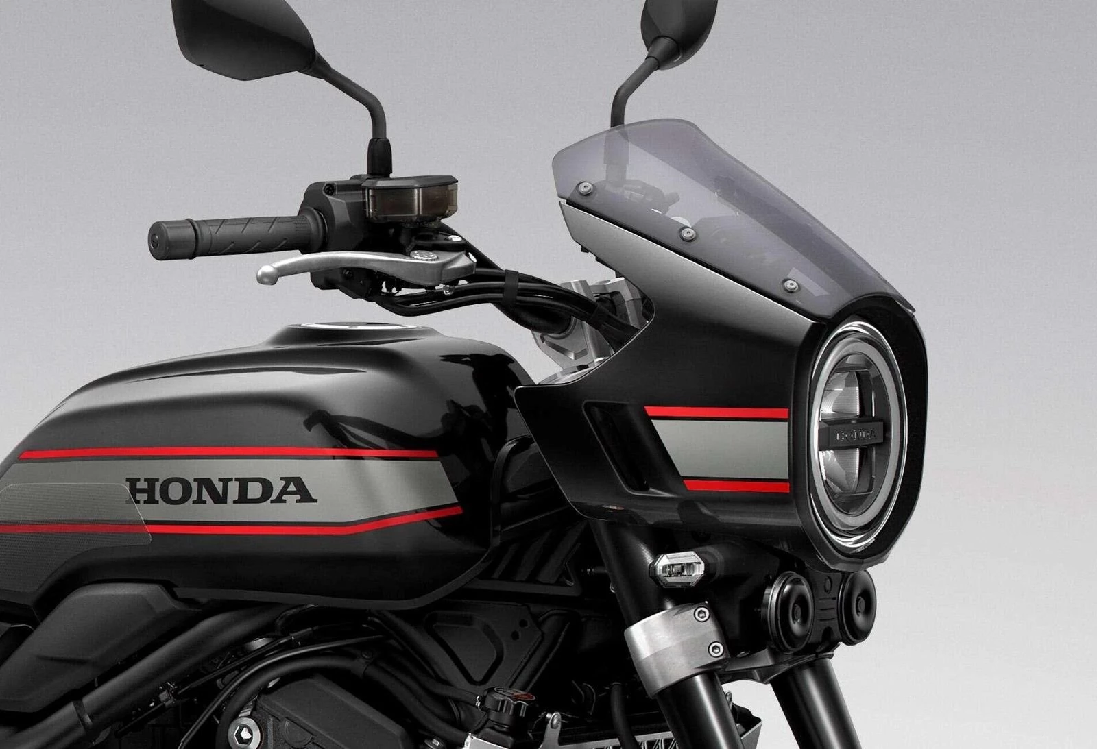 * Die Rückkehr eines Klassikers. Nicht nur ein einfaches Comeback. Die neue CB kommt mit der Seele des Originals und moderner Technik. Der robuste Tank, der zeitlose runde Scheinwerfer und der schlichte, leistungsorientierte Schalldämpfer erinnern an die klassische Maschine und drängen gleichzeitig kühn nach vorne.