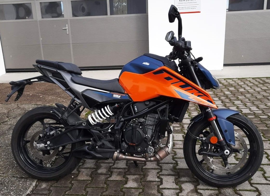 um Verkauf steht unsere KTM 125 Duke mit Erstzulassung im März 2025. Das Vorführfahrzeug ist um- und unfallfrei und befindet sich den Kilometern entsprechend in einem neuwertigen Zustand. Alle Services wurden in unserer KTM Vertragswerkstatt durchgeführt, die Fahrzeuggarantie läuft noch bis 03/2027. Auch alle Verschleißteile befinden sich in gutem Zustand. Zu unseren Geschäftszeiten können Sie das Fahrzeug besichtigen und nach vorheriger Absprache auch Probefahren. Bei weiteren Fragen stehen wir gerne zur Verfügung.