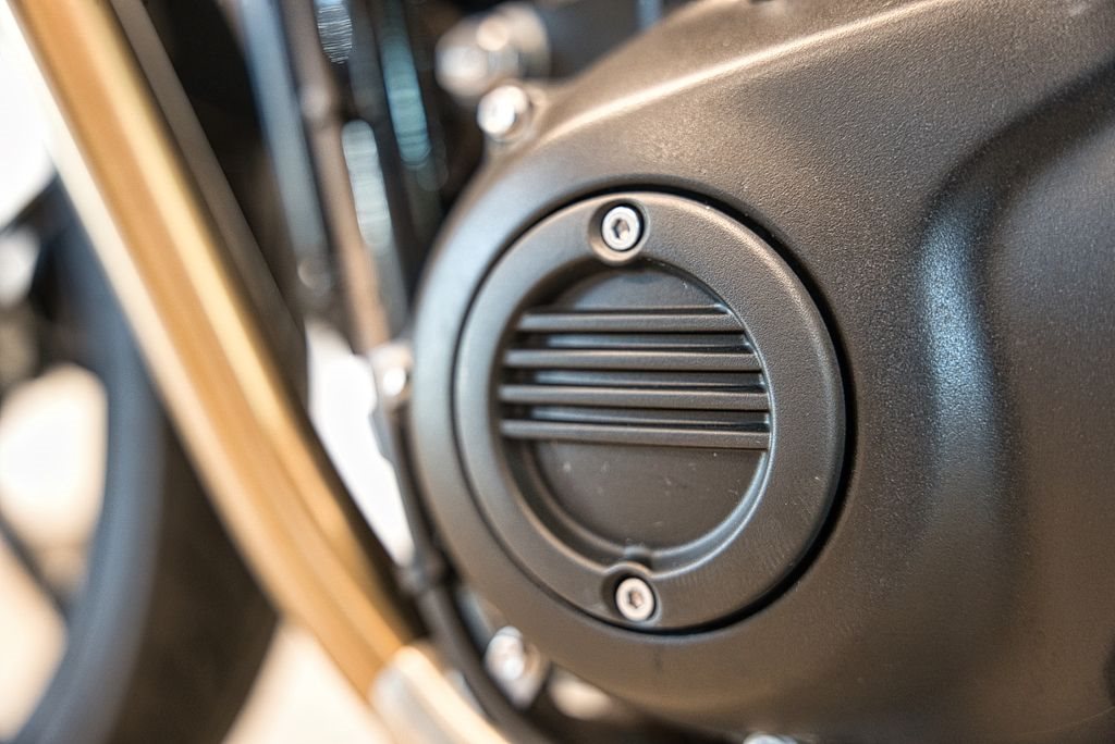 - Flüssigkeitsgekühlter 8V-Zweizylinder-SOHC-Reihenmotor, 270° Hubzapfenversatz, Hubraum 900 cm, Nennleistung 65 PS (47,8 kW) bei 7.500 U/min, Max. Drehmoment 80 Nm bei 3.800 U/min, Getriebe 5-Gang