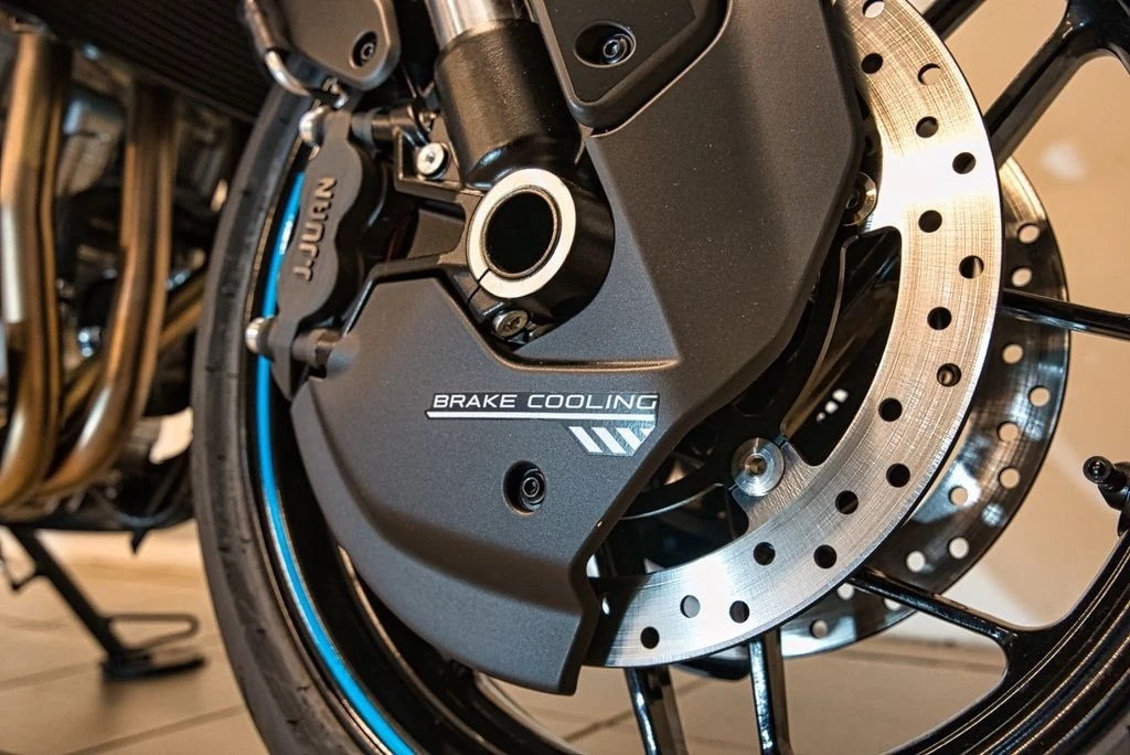 -Vorderradbremse: 300-mm Doppelscheiben, Radial-Vierkolben-Bremssättel, J. Juan