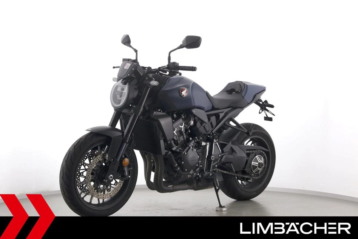Eine Honda CB 1000 R Black Edition aus erster Hand in gebrauchtem Zustand mit kurzem Kennzeichenhalter und Soziussitzabdeckung.