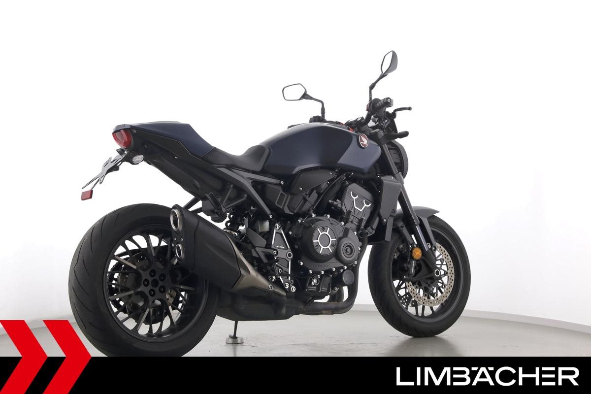 Eine Honda CB 1000 R Black Edition aus erster Hand in gebrauchtem Zustand mit kurzem Kennzeichenhalter und Soziussitzabdeckung.