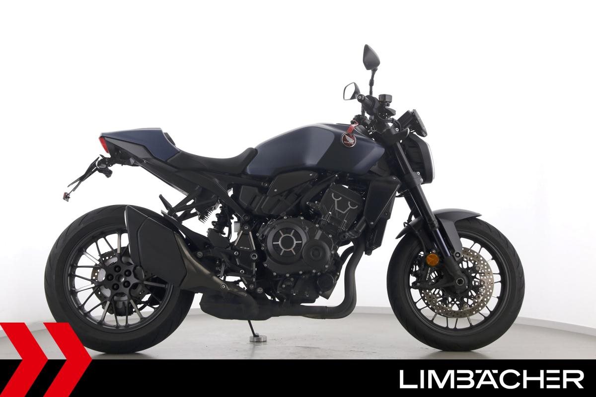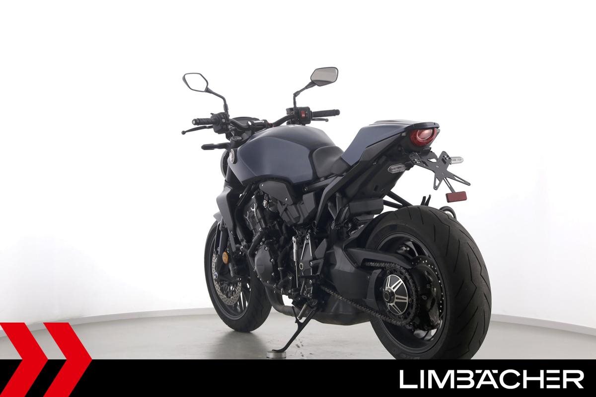Eine Honda CB 1000 R Black Edition aus erster Hand in gebrauchtem Zustand mit kurzem Kennzeichenhalter und Soziussitzabdeckung.
