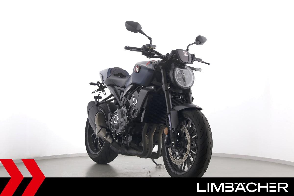 Eine Honda CB 1000 R Black Edition aus erster Hand in gebrauchtem Zustand mit kurzem Kennzeichenhalter und Soziussitzabdeckung.