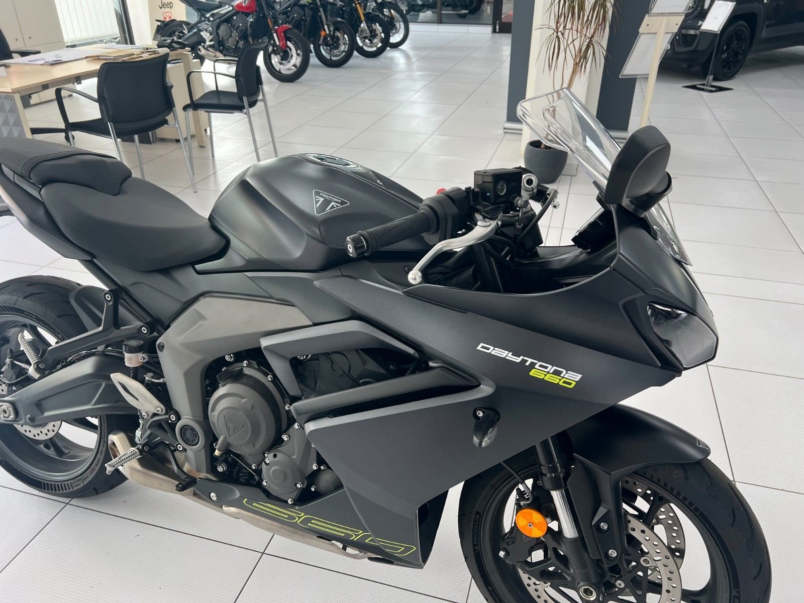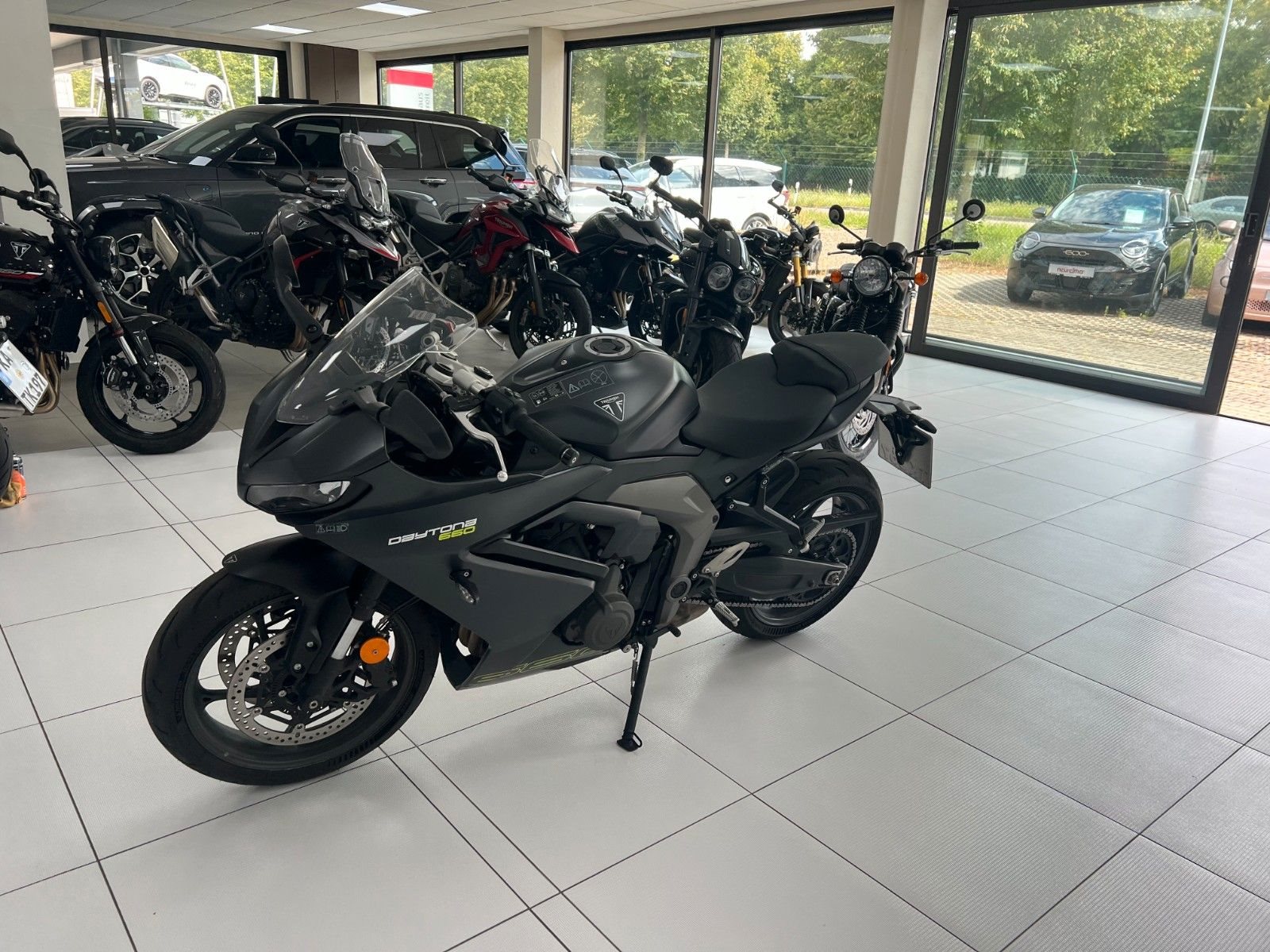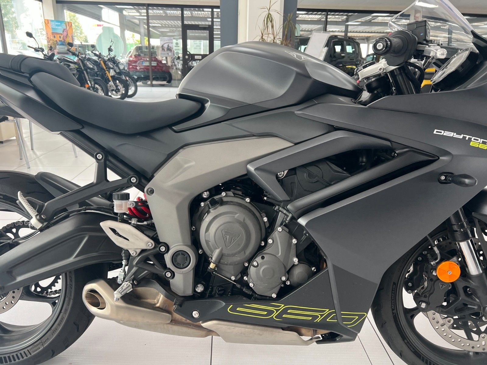 Die Daytona 660 ist Triumphs Supersportler in der Mittelklasse. Sie kombiniert die Agilität eines Sportbikes mit alltagstauglichem Komfort und der typischen Charakteristik des Dreizylindermotors. Ein Motorrad für alle, die Sportlichkeit und Vielseitigkeit in einem Bike suchen.