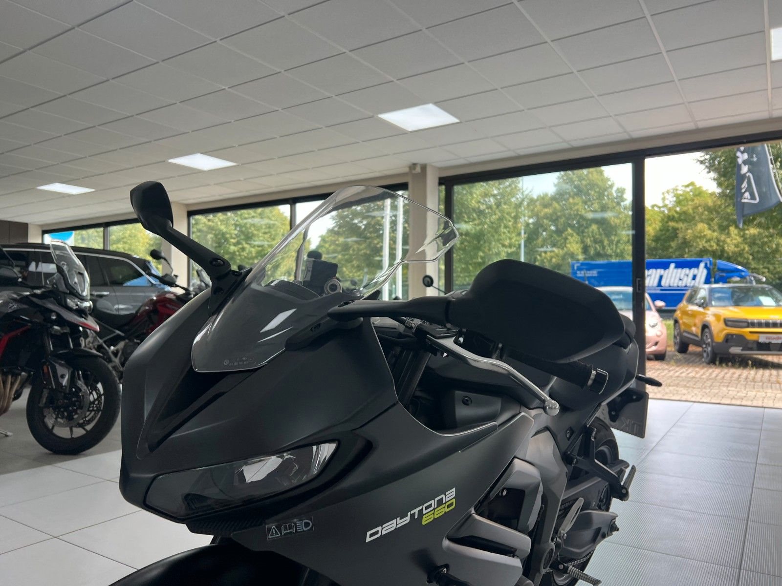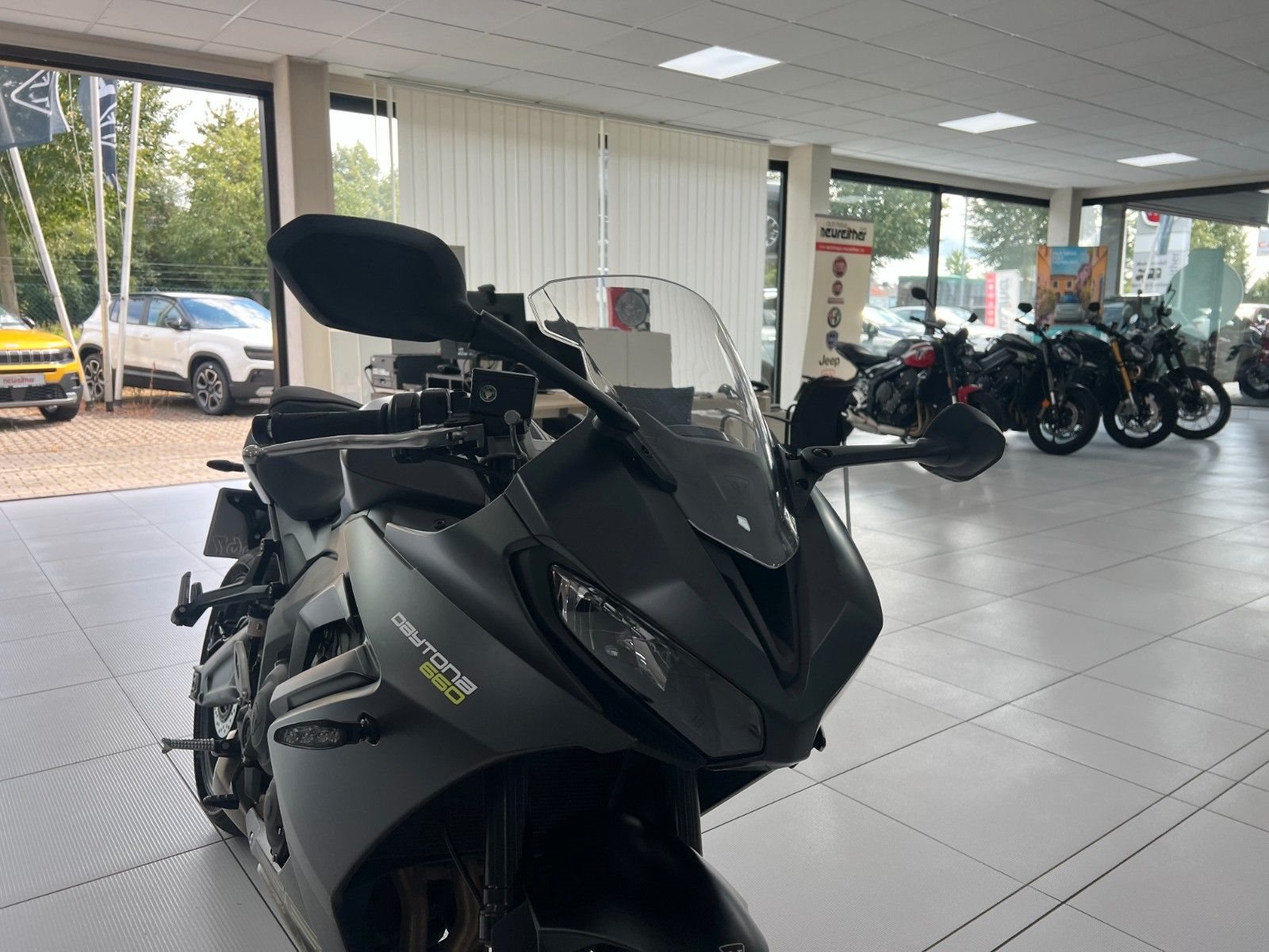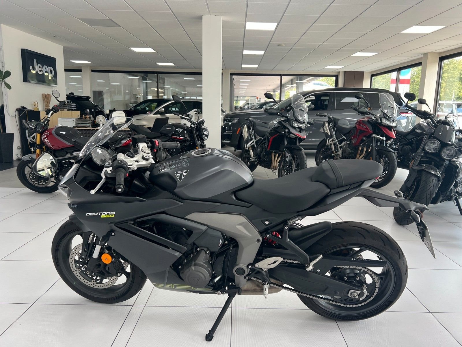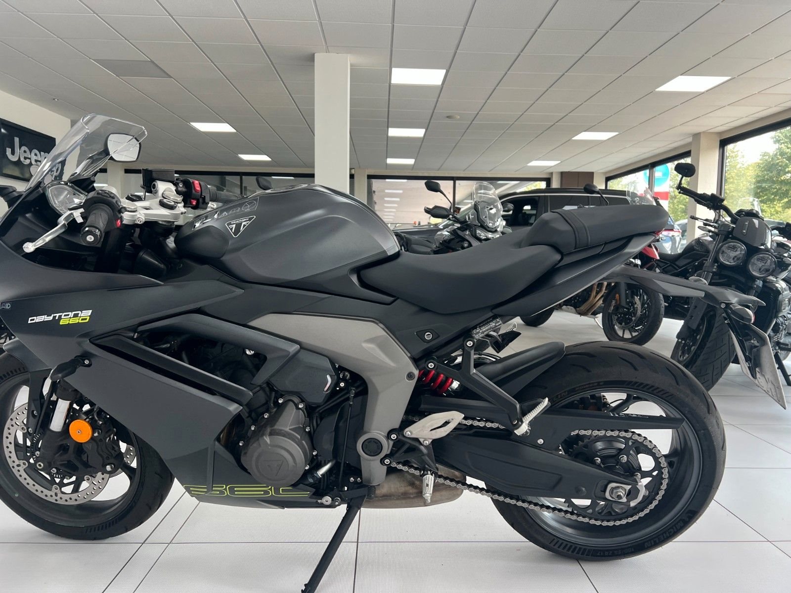 Die Daytona 660 ist Triumphs Supersportler in der Mittelklasse. Sie kombiniert die Agilität eines Sportbikes mit alltagstauglichem Komfort und der typischen Charakteristik des Dreizylindermotors. Ein Motorrad für alle, die Sportlichkeit und Vielseitigkeit in einem Bike suchen.