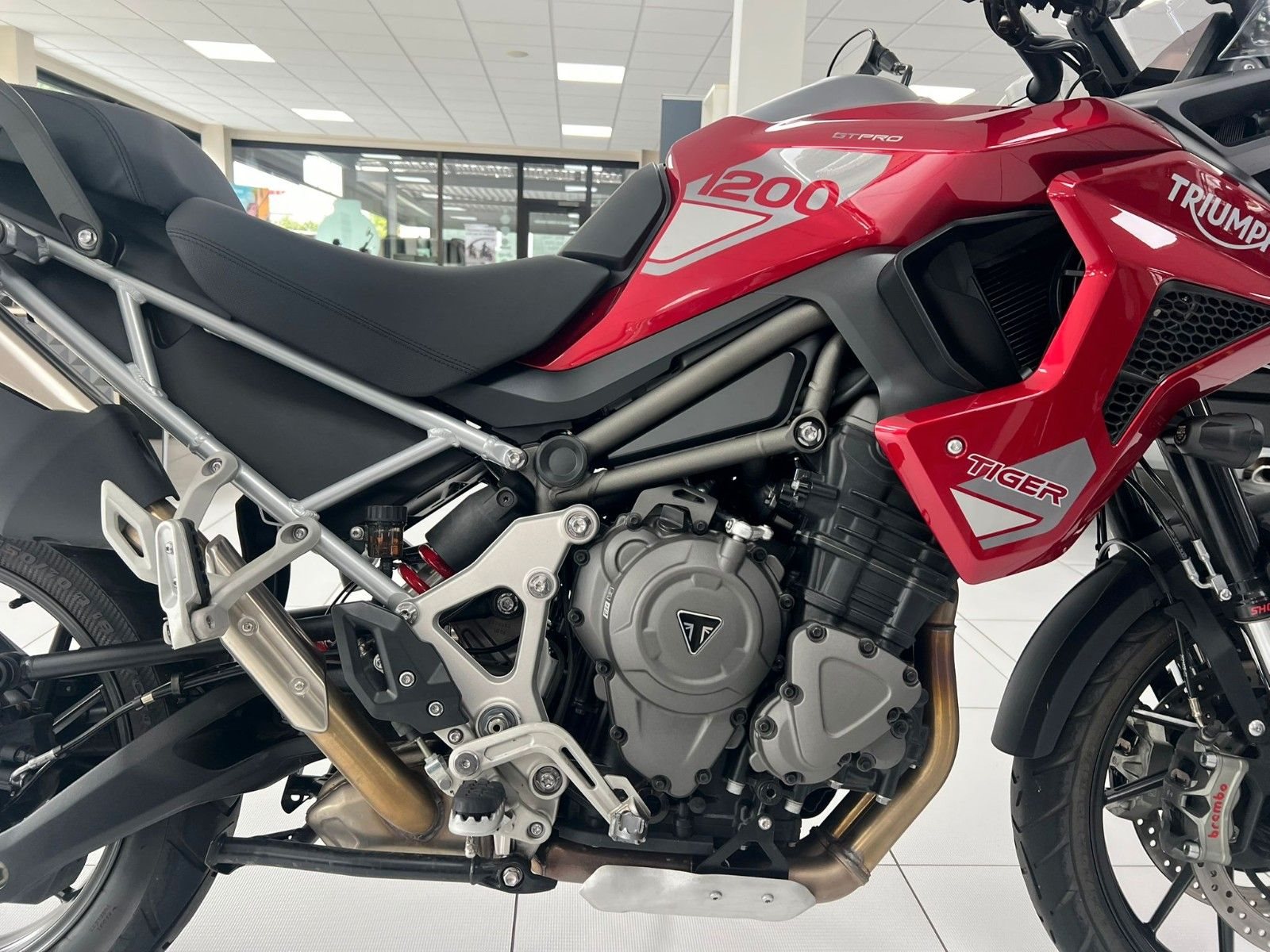 Triumph Tiger 1200 GT Pro - 4.308 km - EZ 2025 - Premium Adventure Die Tiger 1200 GT Pro steht für modernstes Adventure-Bike-Engineering: Leichter, leistungsstärker und komfortabler als je zuvor. Mit ihrem kraftvollen 150-PS-Dreizylinder, elektronischem Fahrwerk und einer Ausstattung, die kaum Wünsche offenlässt, bietet sie alles, was man für lange Touren und anspruchsvolle Tagesetappen braucht. Dieses Exemplar mit nur 4.308 km kombiniert neuwertigen Zustand mit der kompletten Premium-Ausstattung der GT Pro - ein Motorrad für Fahrer, die keine Kompromisse eingehen wollen.