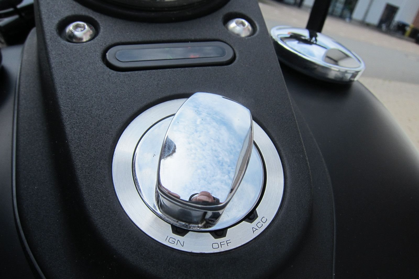 - Schwarze Tankkonsole mit Tachometer und Drehzahlmesser
