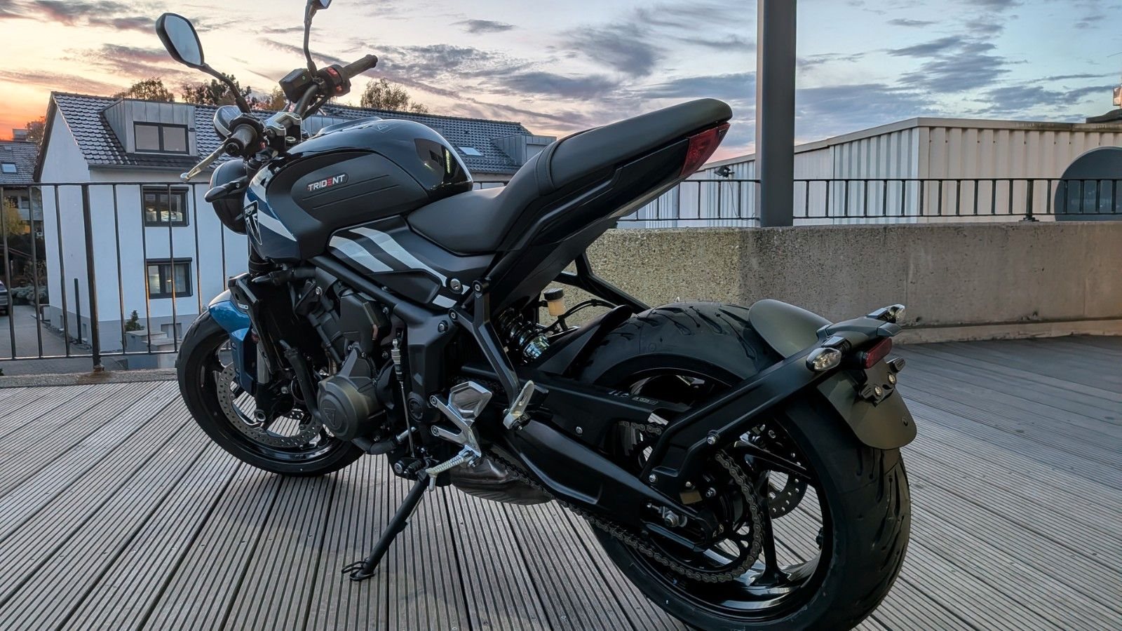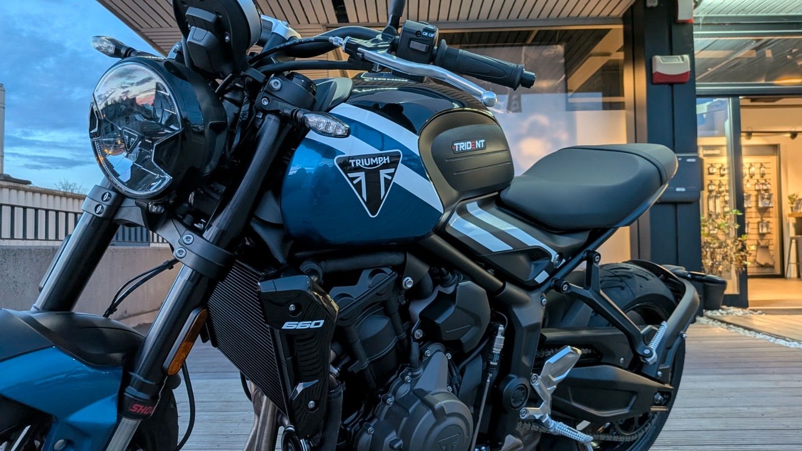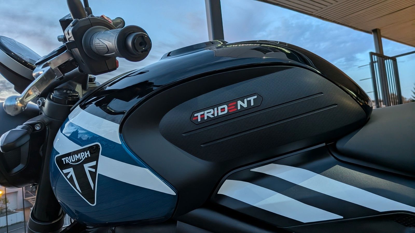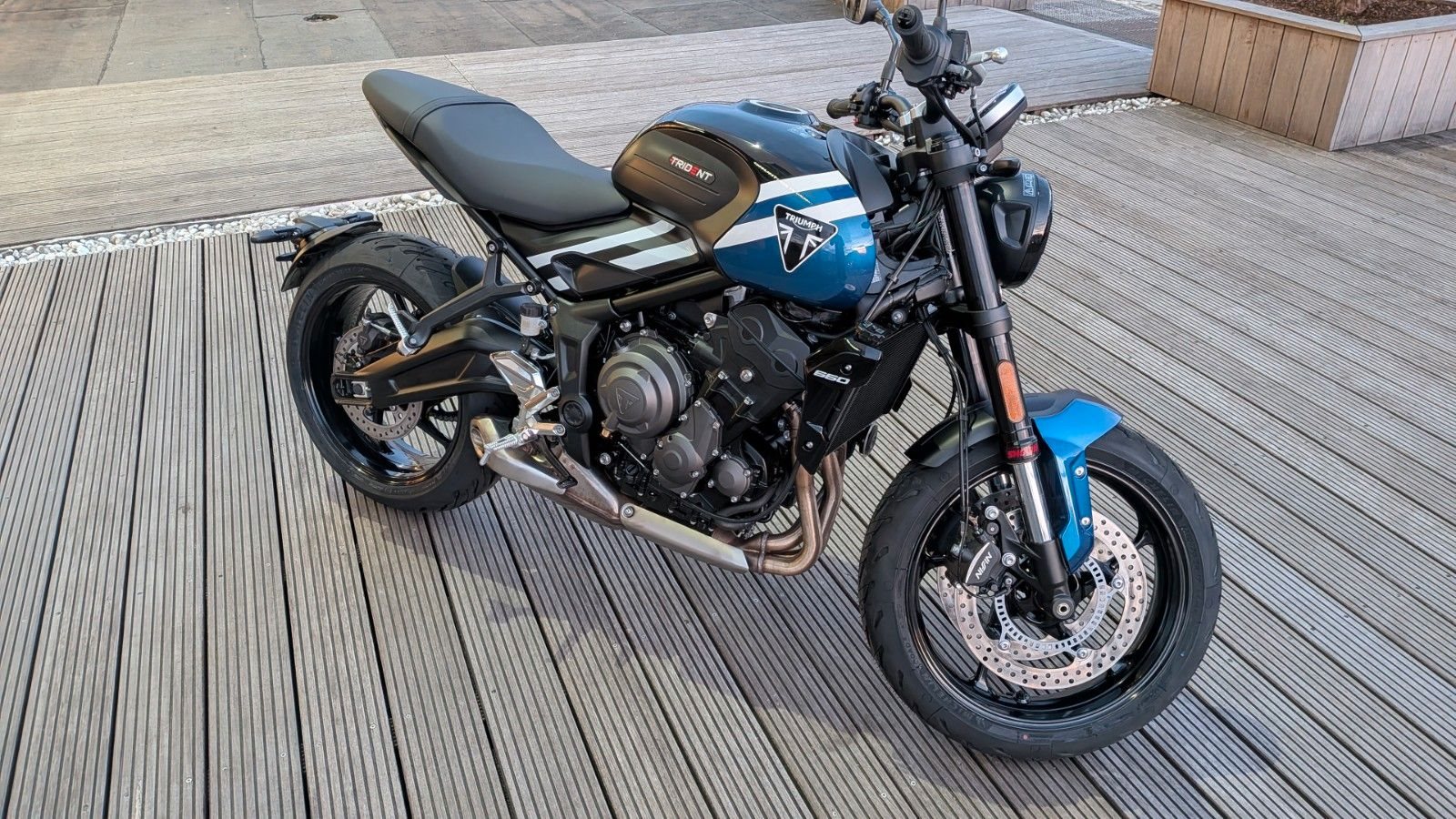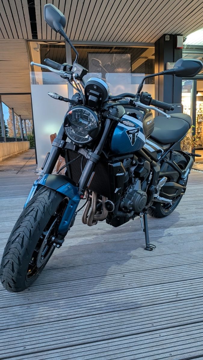 Zum Verkauf steht eine Triumph Trident 660 in der eleganten Farbvariante Cobalt Blue / Sapphire Black.