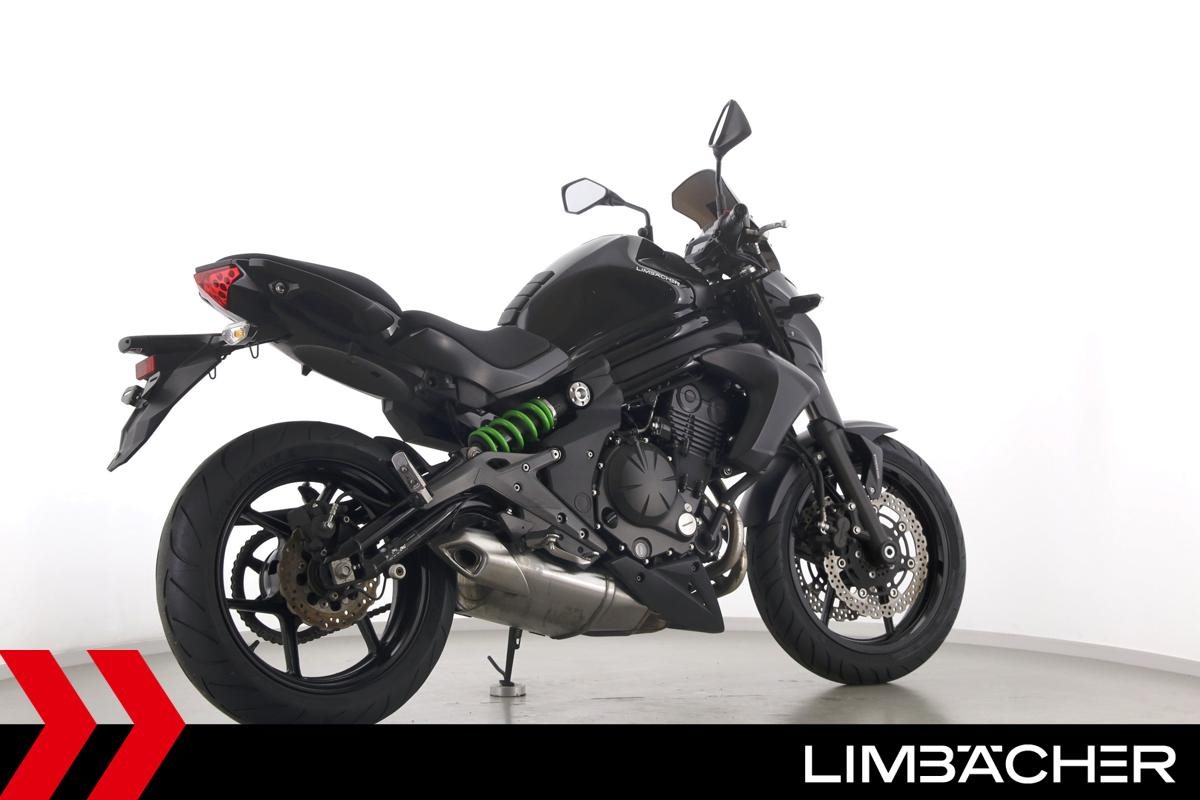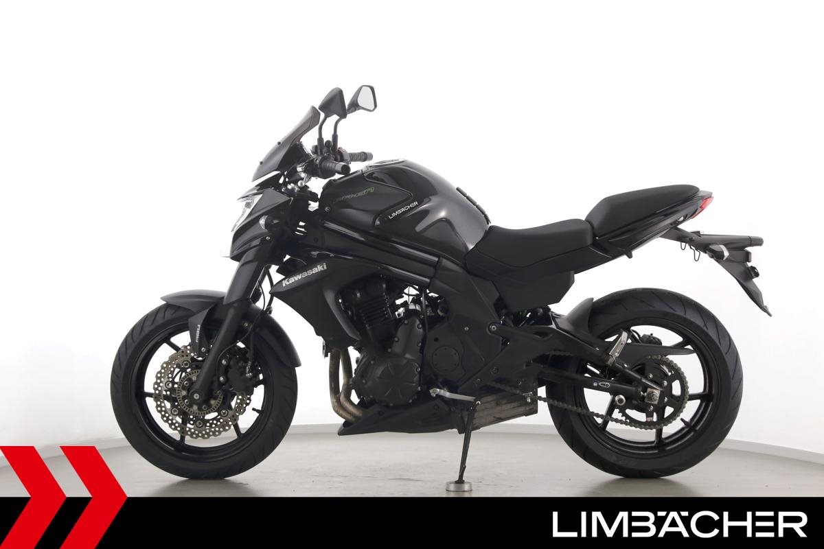 Eine scheckheftgepflegte Kawasaki ER-6n aus erster Hand in gepflegtem Zustand u.a. mit Windschild und Montageheber-Aufnahmen.
