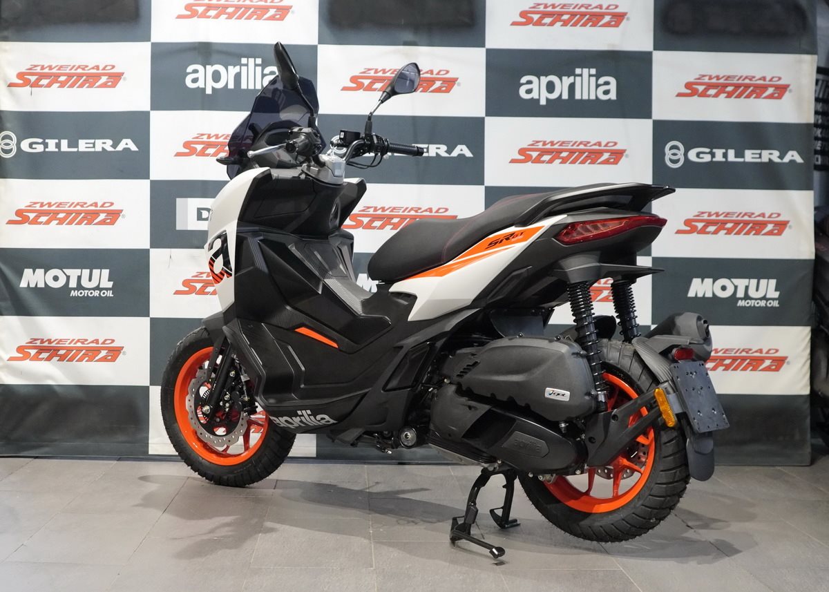 In der Version SR GT Sport 200 kommen Wave-Bremsscheiben zum Einsatz, die leichter sind und eine bessere Wärmeableitung ermöglichen, um ein hohes Leistungsniveau zu gewährleisten. Das Fahrwerk, abgeleitet aus der sportlichen DNA von Aprilia, garantiert Agilität und ein ansprechendes Fahrverhalten und bietet eine optimale Balance zwischen Kontrolle und Leistung.
