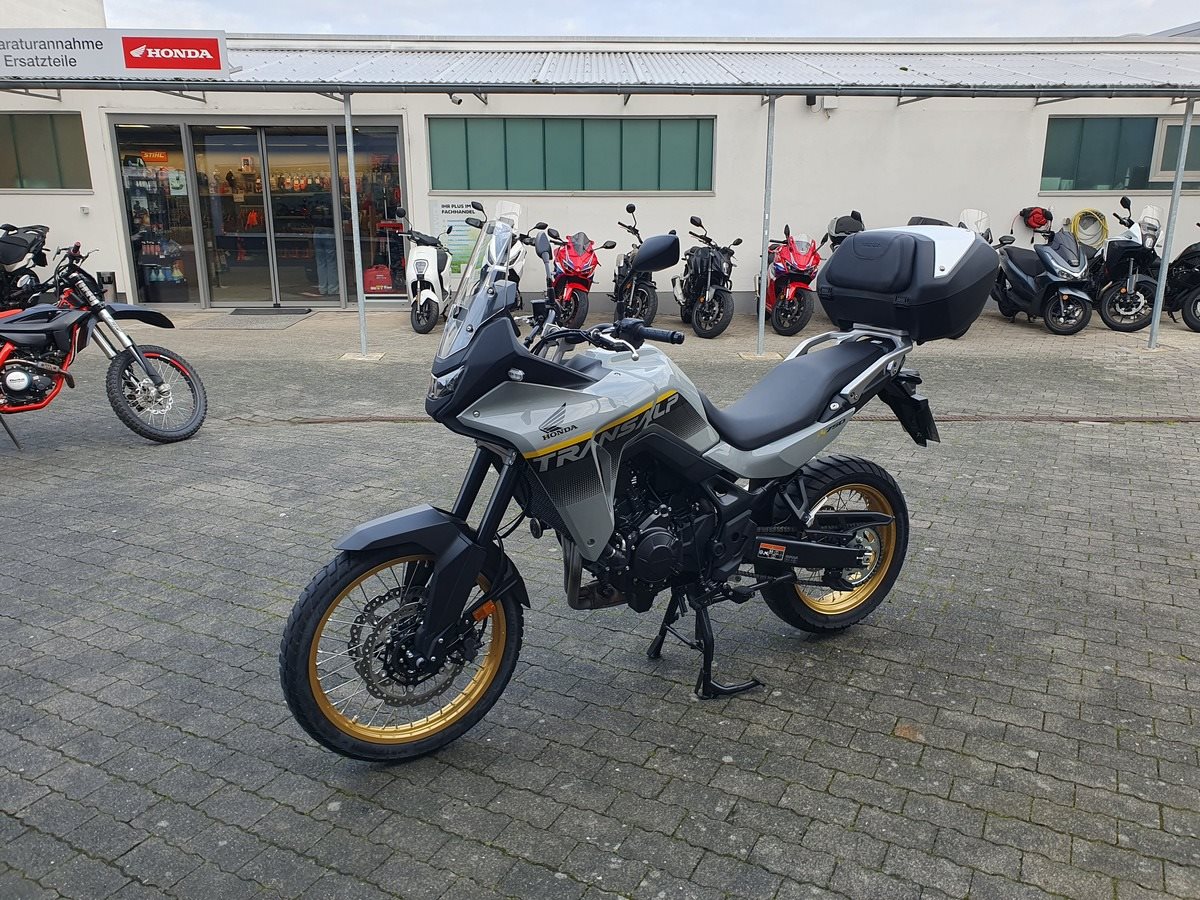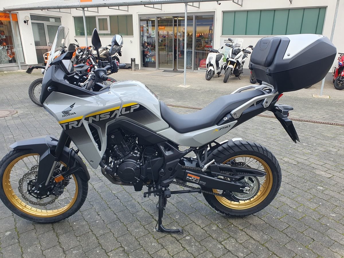 Honda XL750 TRANSALP in pearl deep mud gray Modelljahr 2025 ab sofort Verfügbar! Die Transalp ist unsere Vorführmaschine aus der Saison 2025. Die Maschine hat einen Hauptständer, einen SW-Motech Pro Tankring, das Honda Top-Case und eine 12 Volt Steckdose im Cockpit. Die Maschine hat die 1. Inspektion gemäß Wartungsplan bekommen und bekommt bei Verkauf noch den TÜV neu. Sie ist einem Kunden bei einer Probefahrt mal in der Kurve weg gerutscht und muss daher als reparierter Unfallschaden verkauft werden. Alle beschädigten Teile wurde zu 100% von uns ausgetauscht.