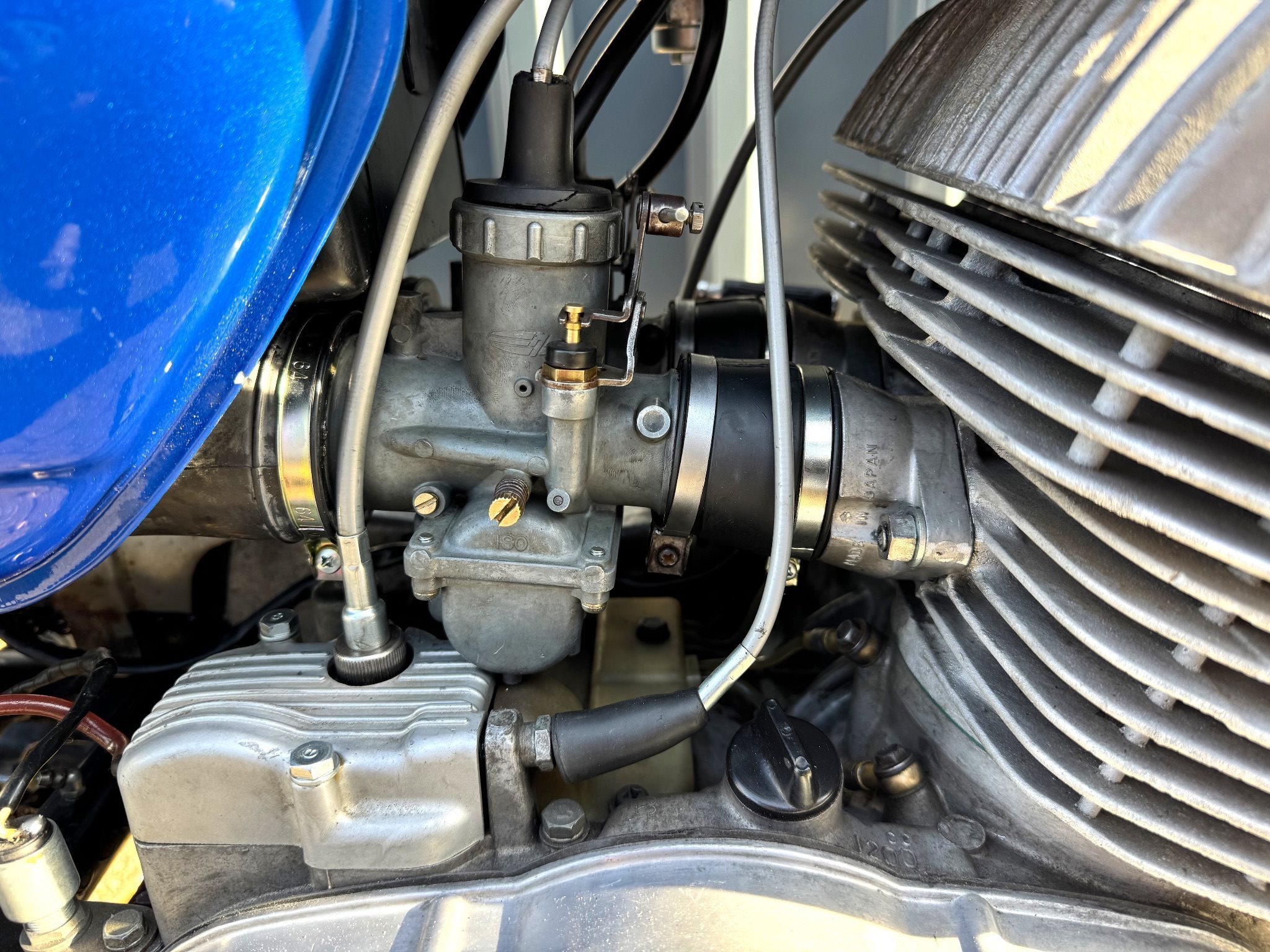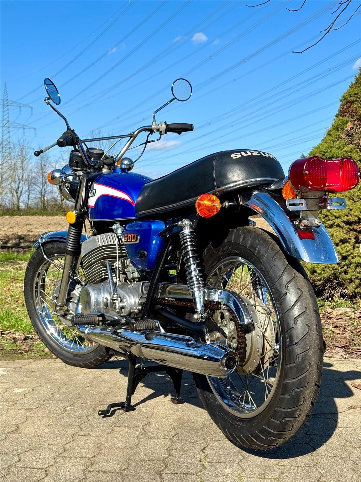 Das Motorrad hat eine frische Inspektion bekommen incl. Vergaserreinigung, neue Ansaugflansche + Luftfilterspinne, es ist sehr gut bereift, neue GEL-Batterie, das vordere Schutzblech wurde incl. der Streben neu verchromt, es hat eine originale, flammneue Auspuffanlage incl. der Krümmer ( das ist fast unbezahlbar ), der original Sattel wurde aufgepolstert, neue Stossdämpfer verbaut. Die Titan springt sehr gut an und macht einfach nur Spass !