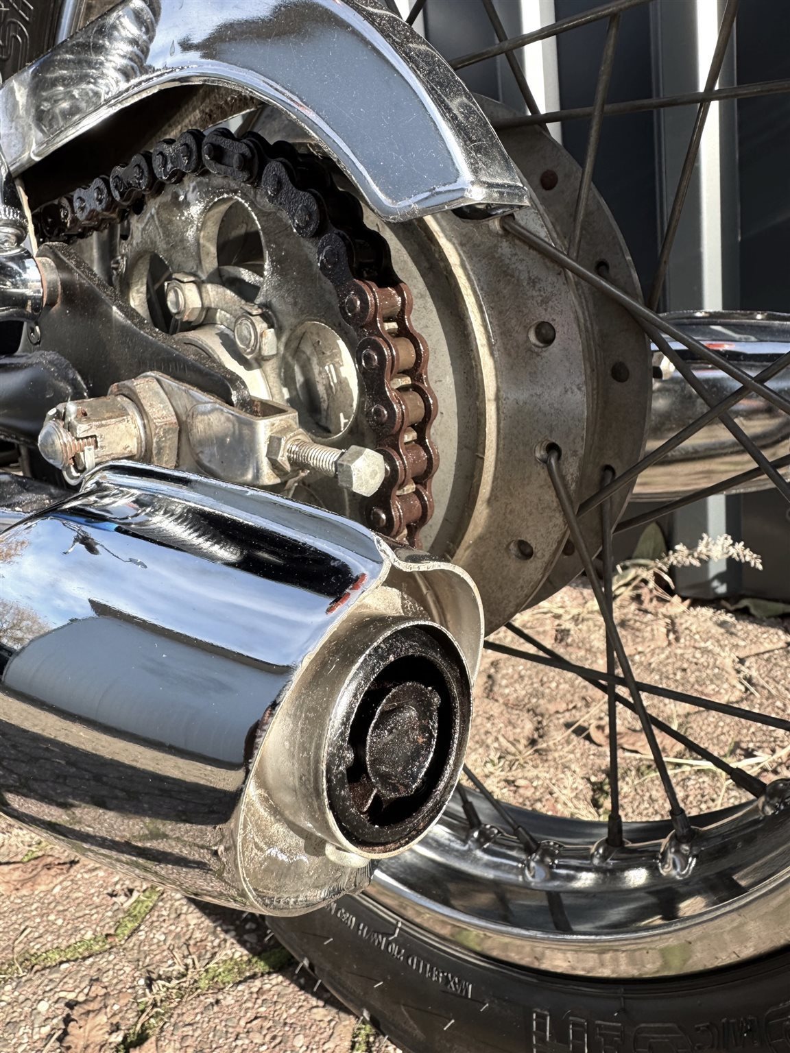 Das Motorrad hat eine frische Inspektion bekommen incl. Vergaserreinigung, neue Ansaugflansche + Luftfilterspinne, es ist sehr gut bereift, neue GEL-Batterie, das vordere Schutzblech wurde incl. der Streben neu verchromt, es hat eine originale, flammneue Auspuffanlage incl. der Krümmer ( das ist fast unbezahlbar ), der original Sattel wurde aufgepolstert, neue Stossdämpfer verbaut. Die Titan springt sehr gut an und macht einfach nur Spass !