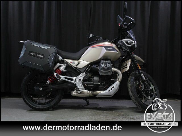 Moto Guzzi V85 TT Travel, ihr Name bringt es auf den Punkt. Sie ist ein Reisemotorrad durch und durch. Die Travelldblquote bietet ab Werk alles, was Mann und Frau sich für ihre kleinen und großen Touren, auf ihren Entdeckungsreisen wünschen. Unverkennbar eine Moto Guzzi, eine perfekte Reisebegleiterin im Abenteuer-Look, die schon bei ihrem Anblick Lust auf Touren und Abenteuer macht.
