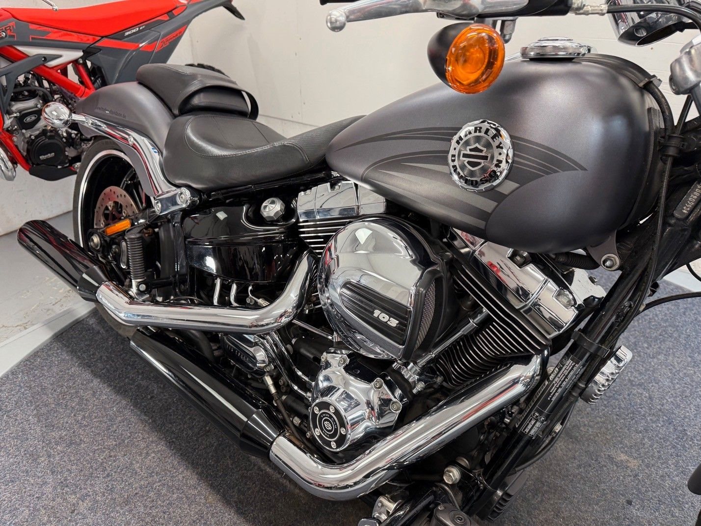 • Die Harley-Davidson Breakout ist in einem sehr gepflegten Zustand