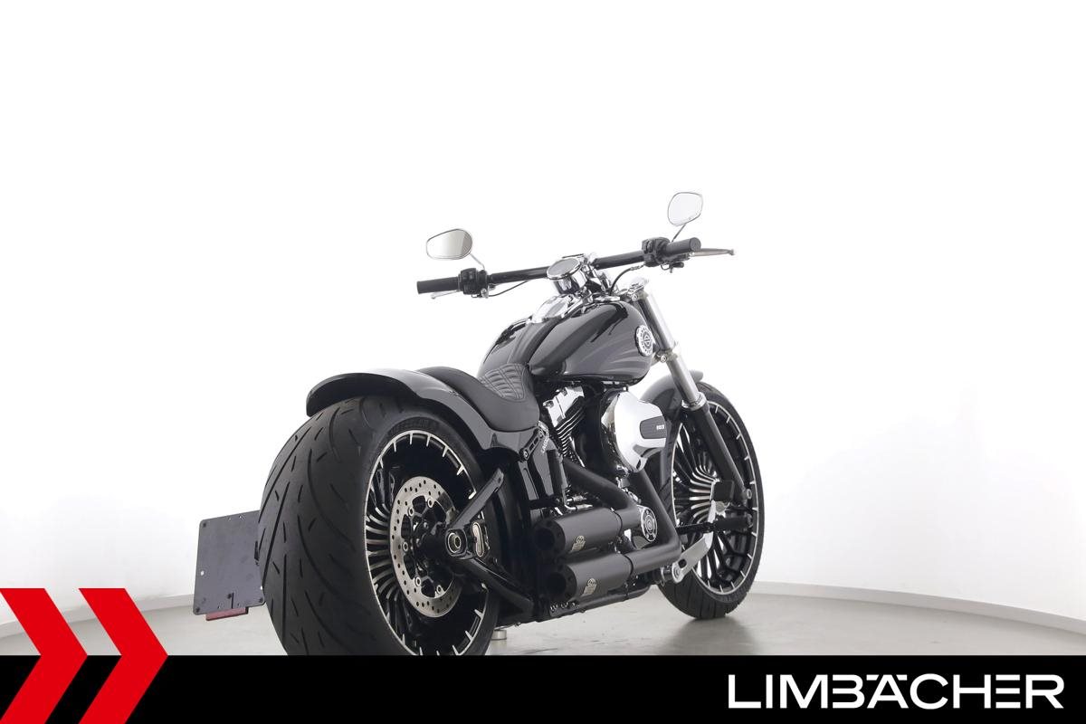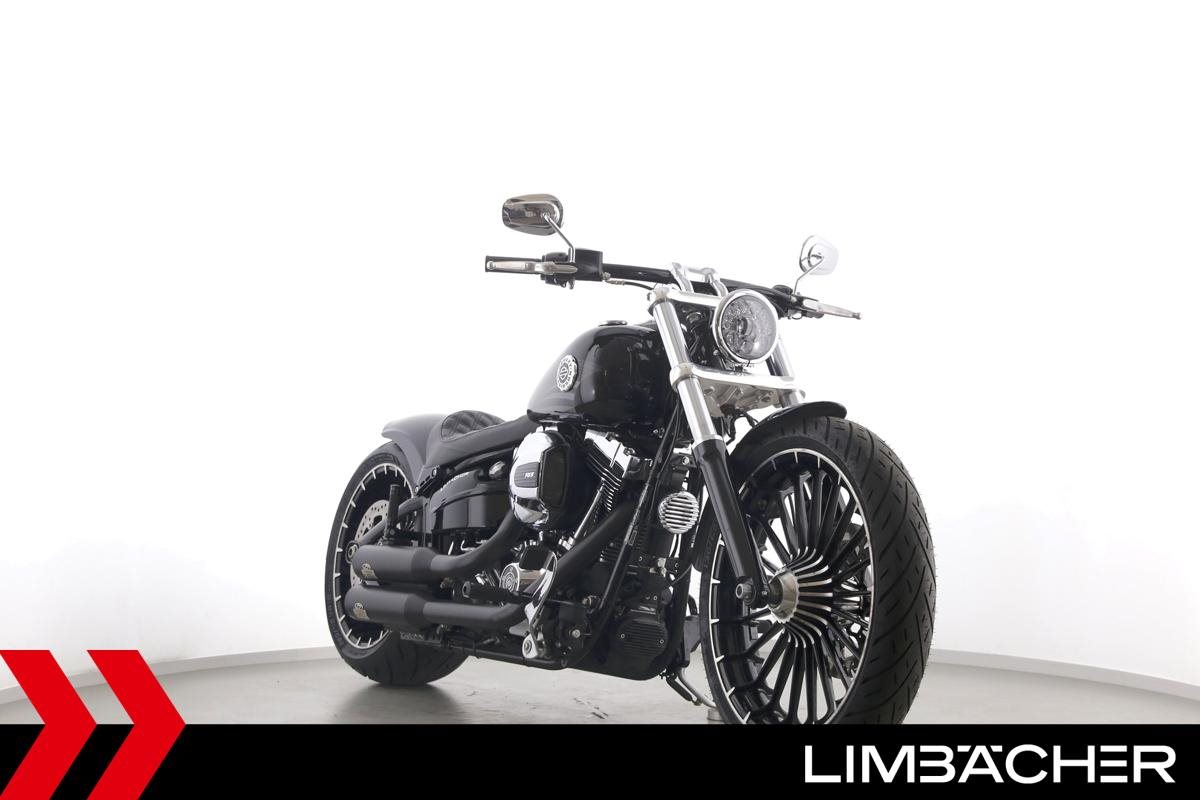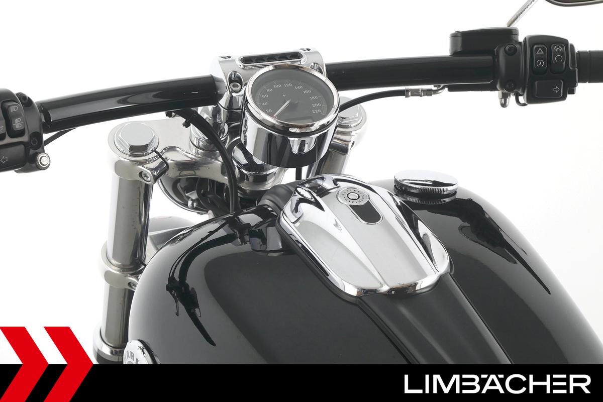 Eine Harley-Davidson Softail Breakout FXSB aus zweiter Hand in gepflegtem Zustand u.a. mit Jekill & Hyde-Klappenauspuff und Blechfee-Heckumbau.
