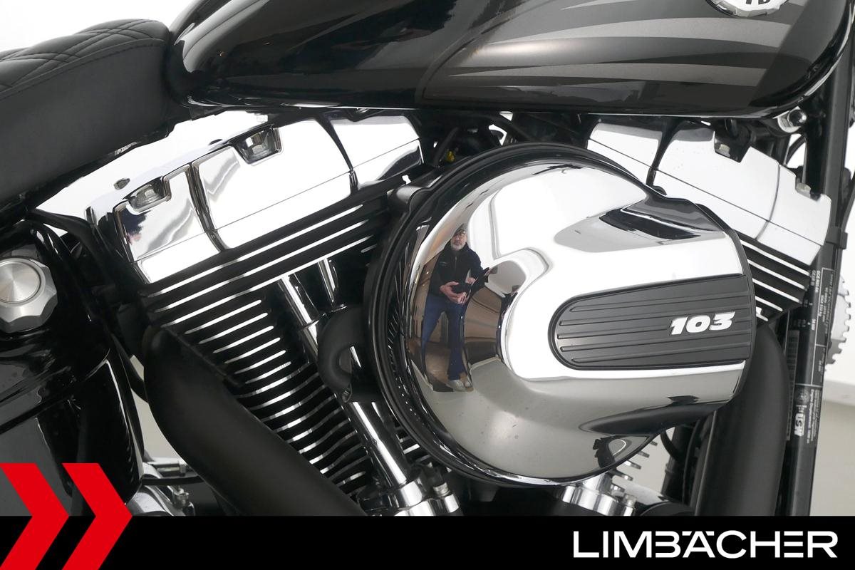 Eine Harley-Davidson Softail Breakout FXSB aus zweiter Hand in gepflegtem Zustand u.a. mit Jekill & Hyde-Klappenauspuff und Blechfee-Heckumbau.