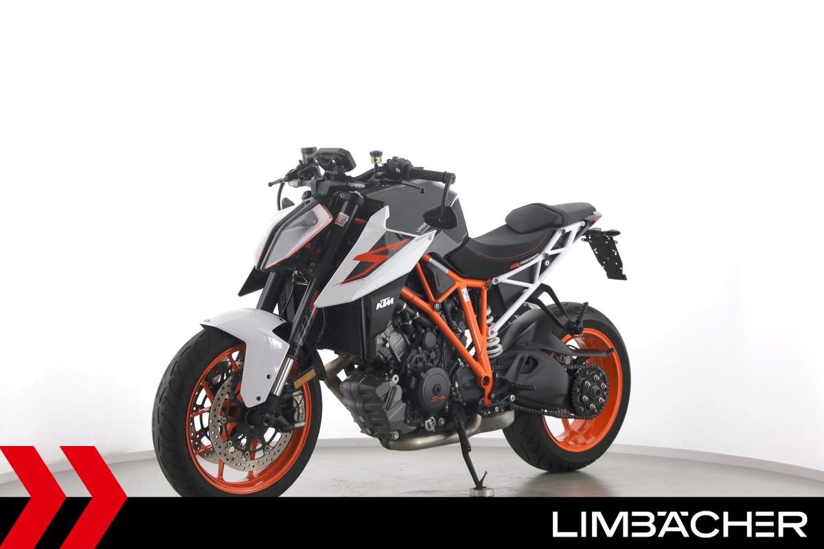Eine scheckheftgepflegte KTM 1290 Super Duke R aus erster Hand in sehr gepflegtem Zustand u.a. mit KTM-Powerparts-Sitz und Lenkerendenspiegeln.