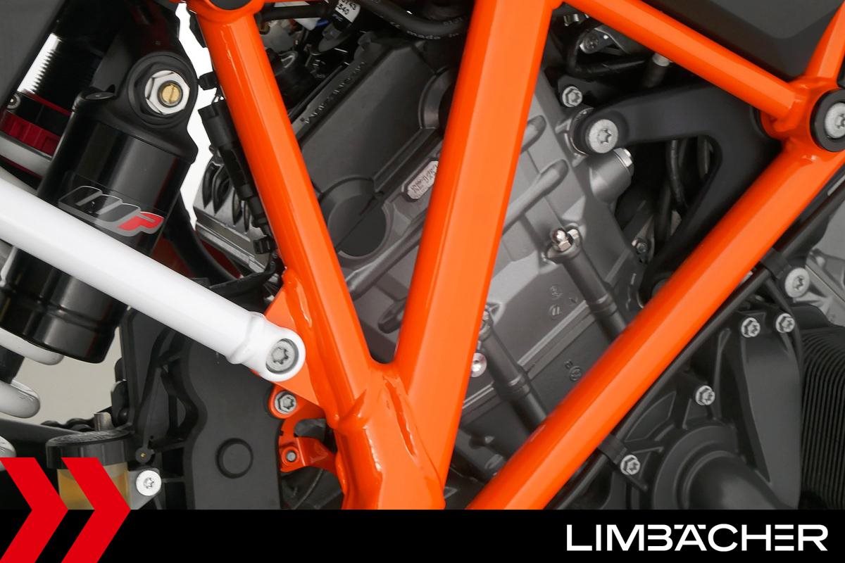 Eine scheckheftgepflegte KTM 1290 Super Duke R aus erster Hand in sehr gepflegtem Zustand u.a. mit KTM-Powerparts-Sitz und Lenkerendenspiegeln.