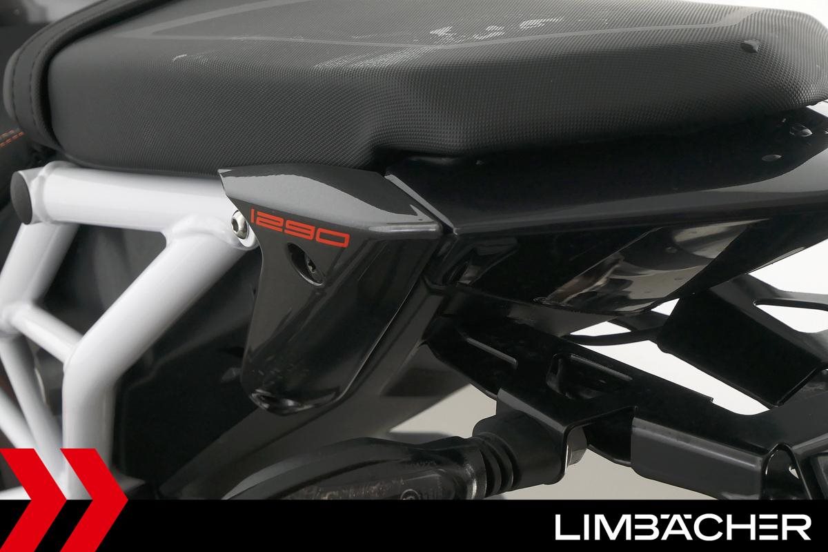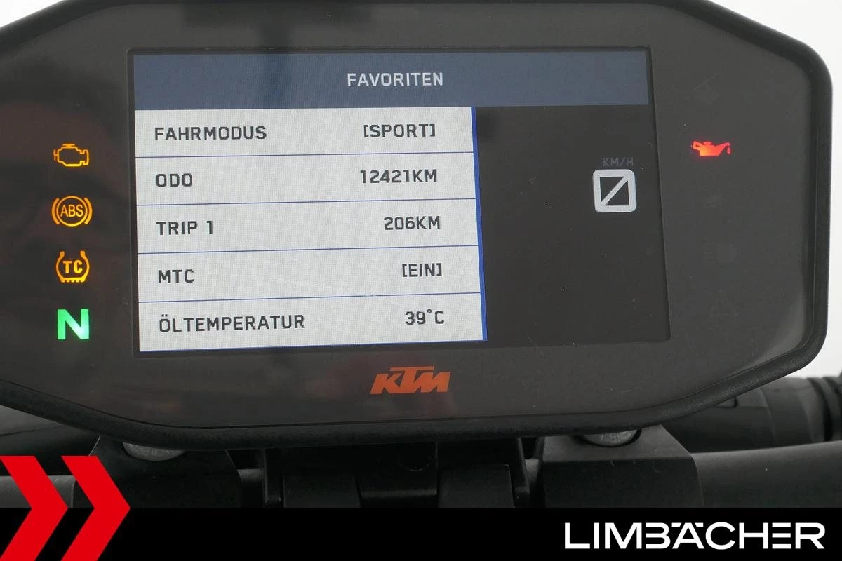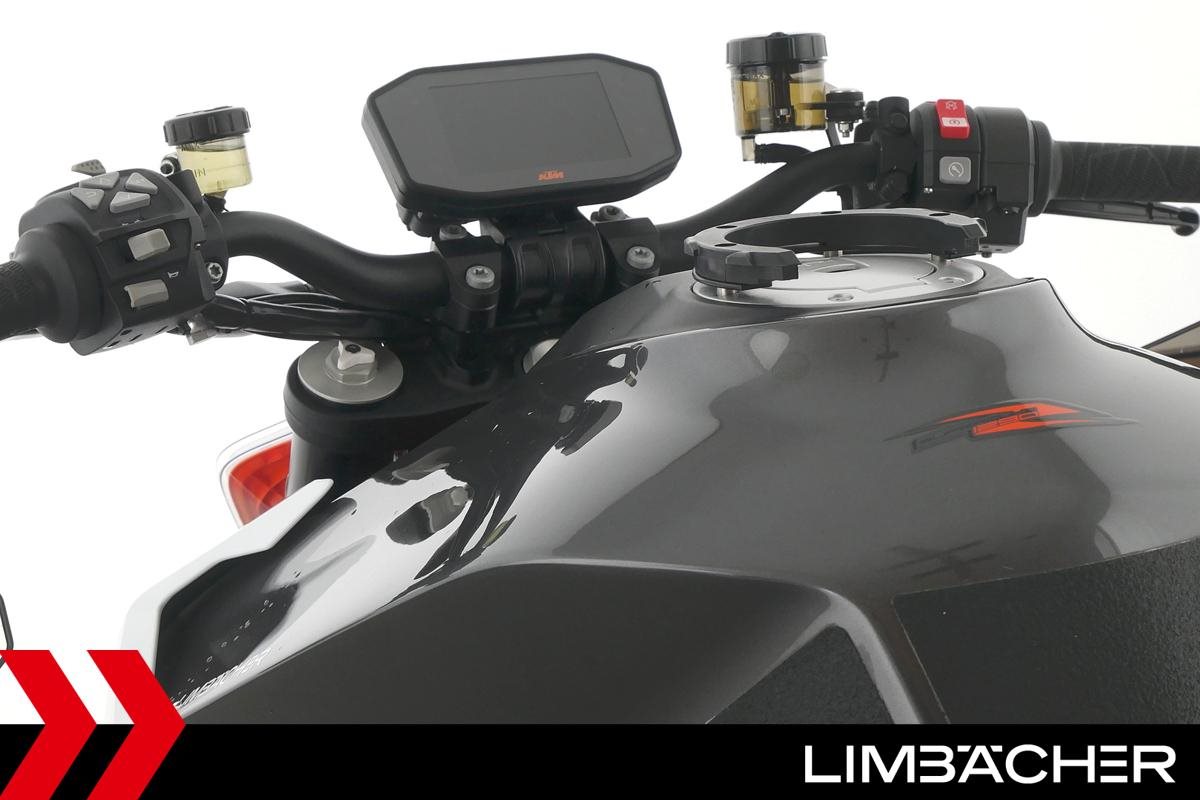 Eine scheckheftgepflegte KTM 1290 Super Duke R aus erster Hand in sehr gepflegtem Zustand u.a. mit KTM-Powerparts-Sitz und Lenkerendenspiegeln.