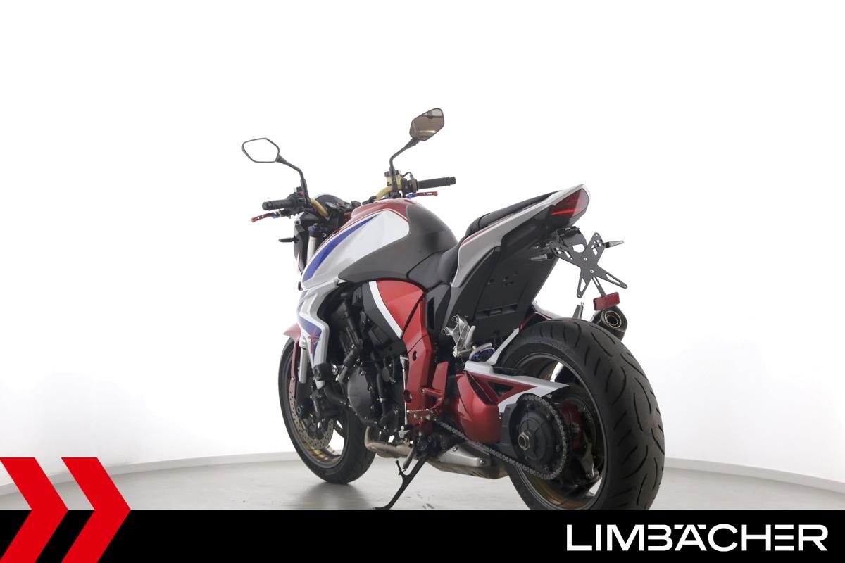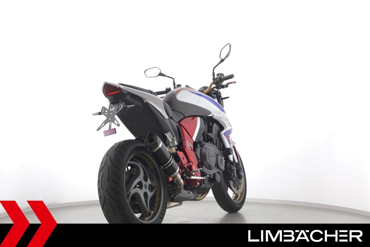 Eine scheckheftgepflegte Honda CB 1000 R aus zweiter Hand in gepflegtem Zustand u.a. mit Arrow-Endschalldämpfer und kurzem Kennzeichenhalter.