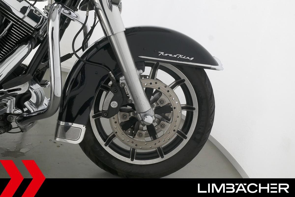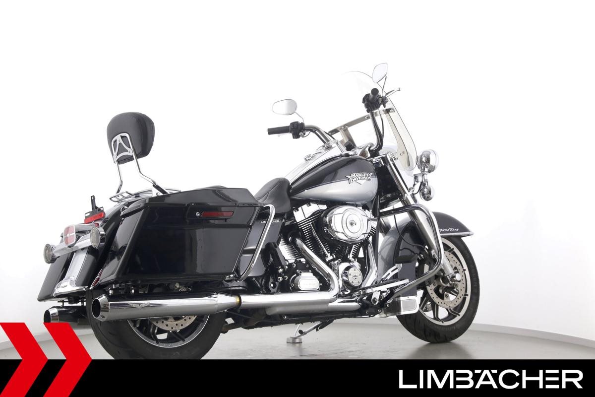 Eine Harley-Davidson Road King Classic FLHRC in gepflegtem Zustand u.a. mit KessTech-V2-Klappenauspuff sowie HD-Koffersystem.