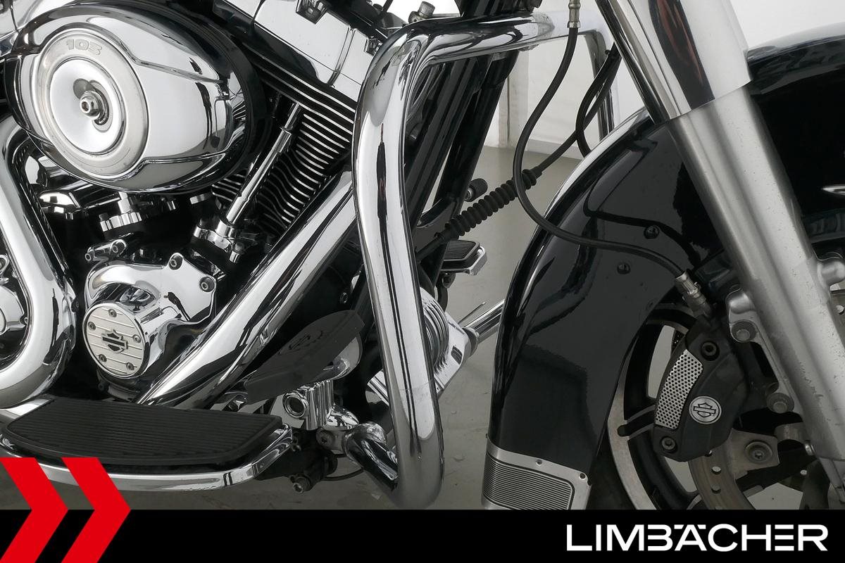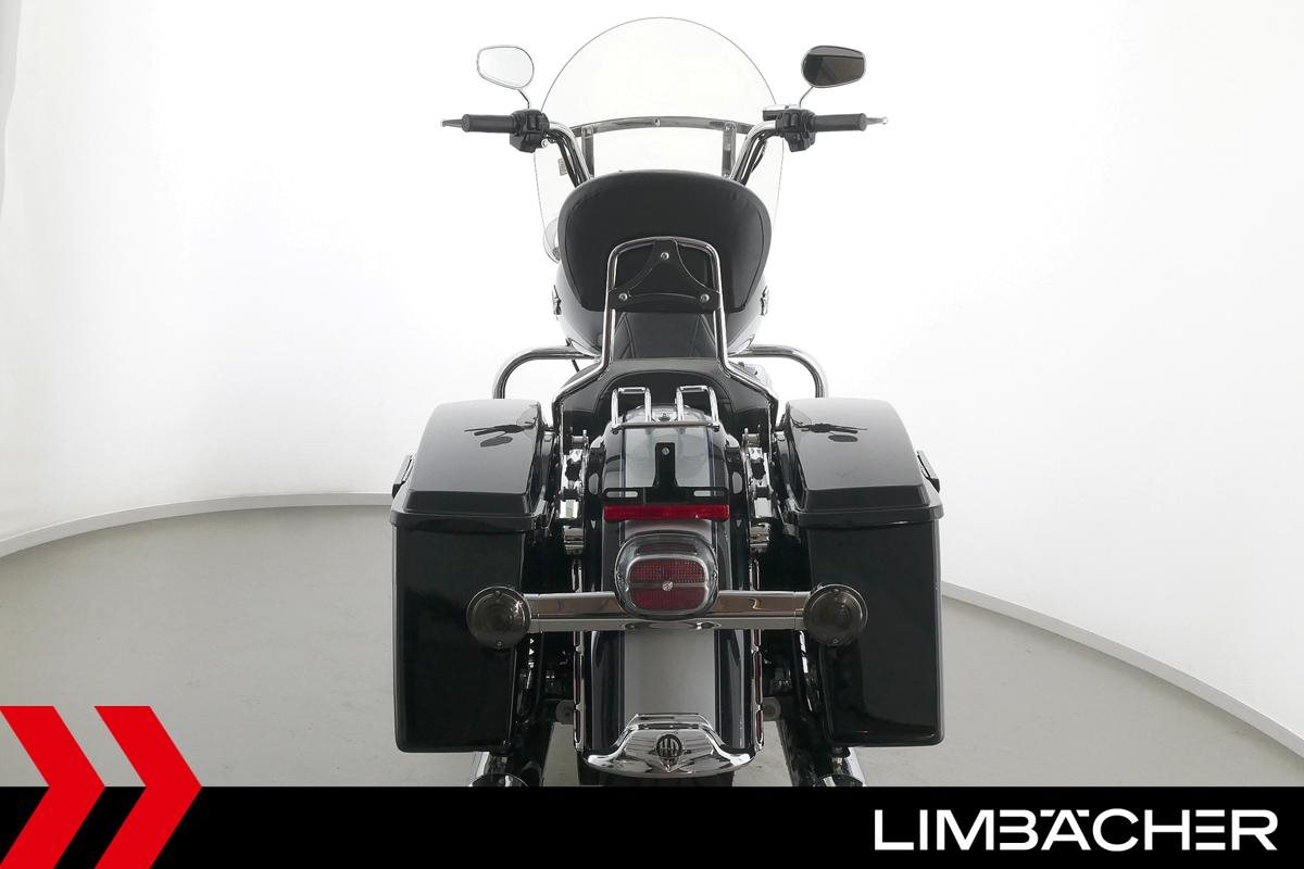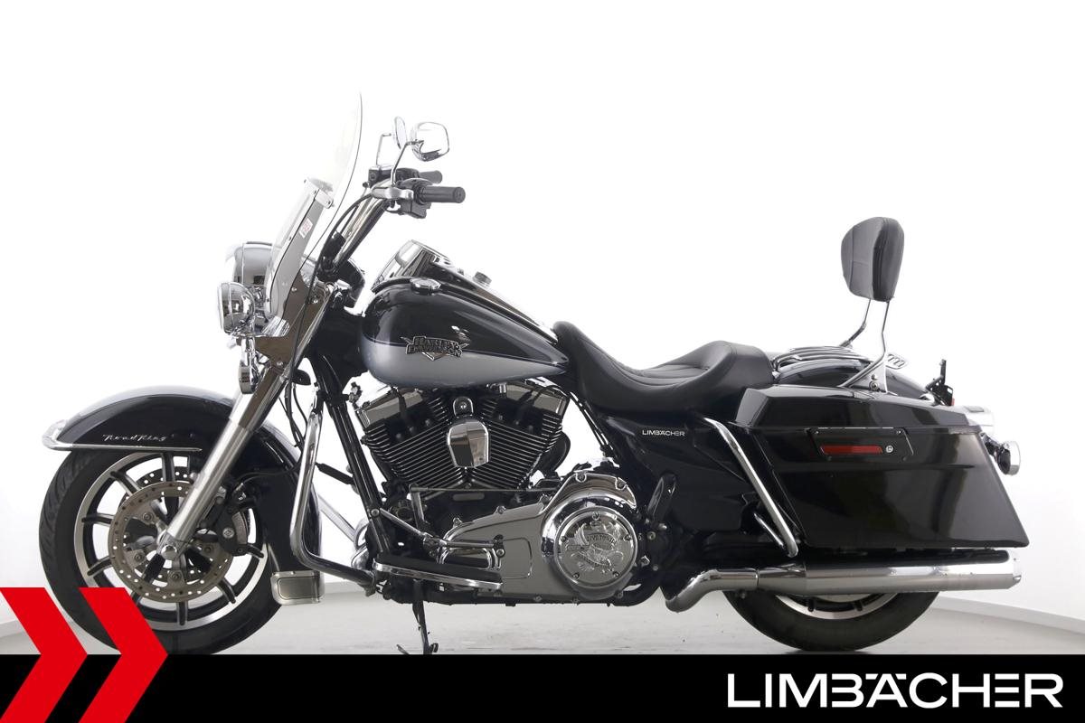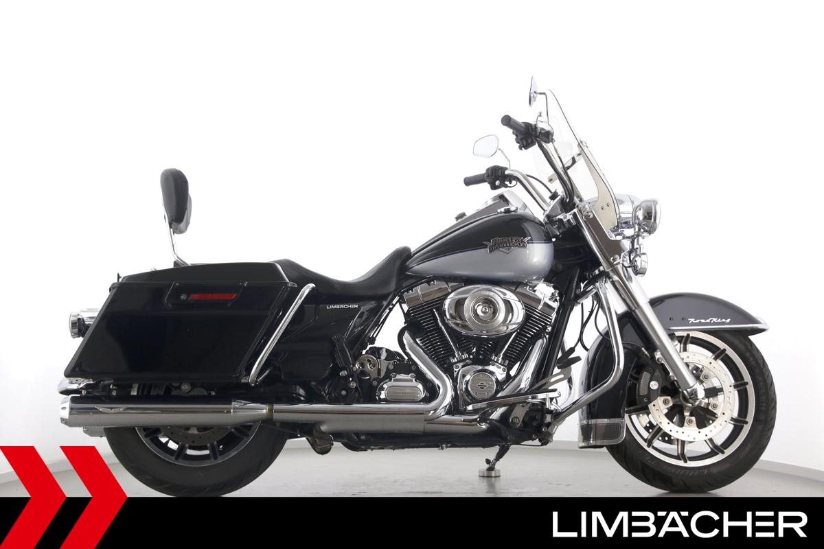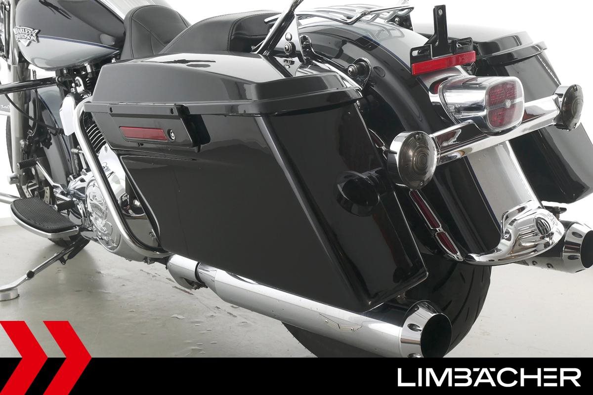 Eine Harley-Davidson Road King Classic FLHRC in gepflegtem Zustand u.a. mit KessTech-V2-Klappenauspuff sowie HD-Koffersystem.