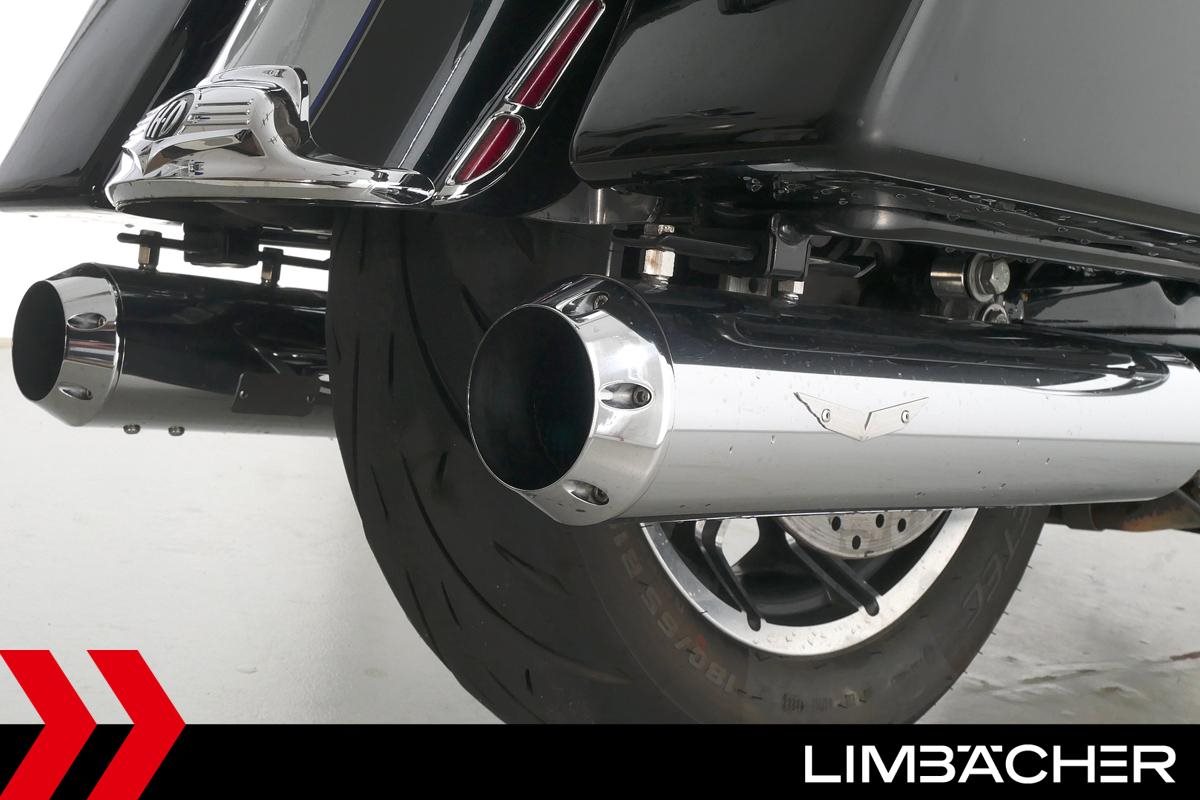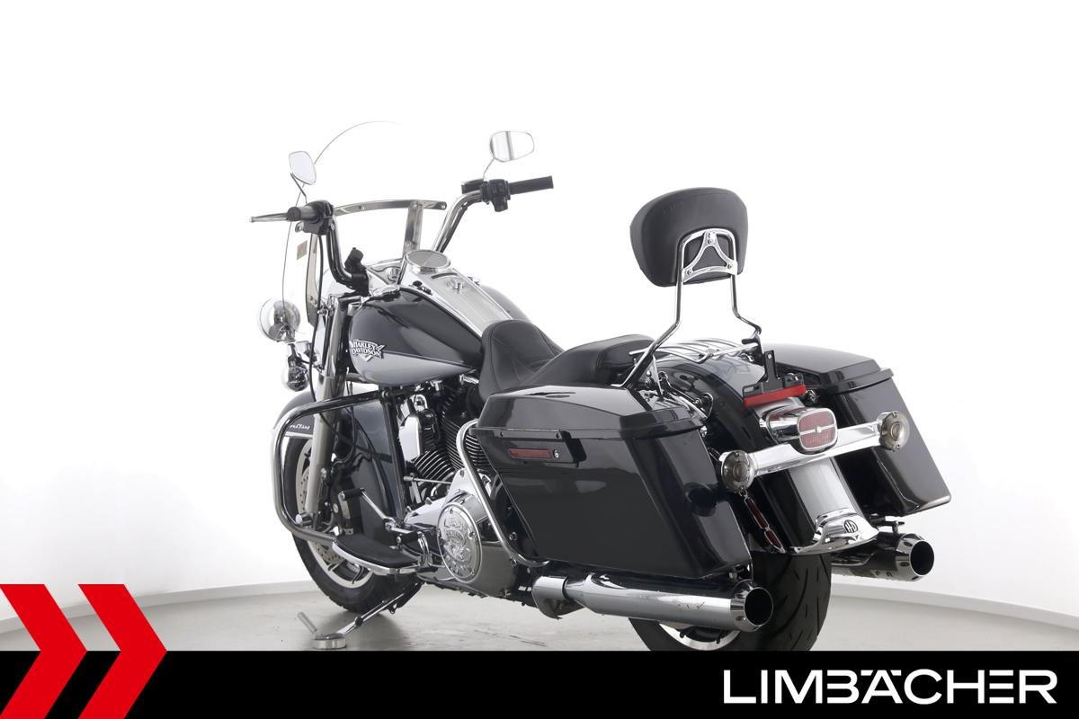 Eine Harley-Davidson Road King Classic FLHRC in gepflegtem Zustand u.a. mit KessTech-V2-Klappenauspuff sowie HD-Koffersystem.