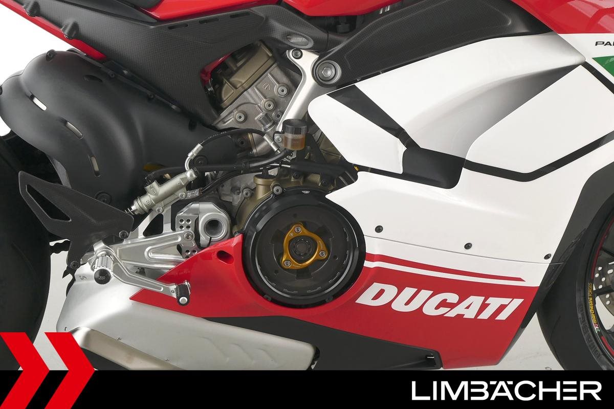 Eine scheckheftgepflegte Ducati Panigale V4 Speciale aus zweiter Hand in gepflegtem Zustand u.a. mit Öhlins-Fahrwerk sowie transparentem Kupplungsdeckel.