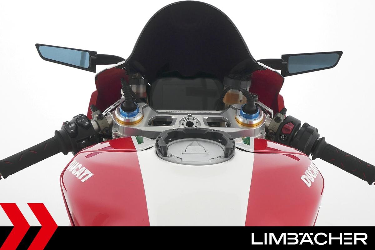Eine scheckheftgepflegte Ducati Panigale V4 Speciale aus zweiter Hand in gepflegtem Zustand u.a. mit Öhlins-Fahrwerk sowie transparentem Kupplungsdeckel.