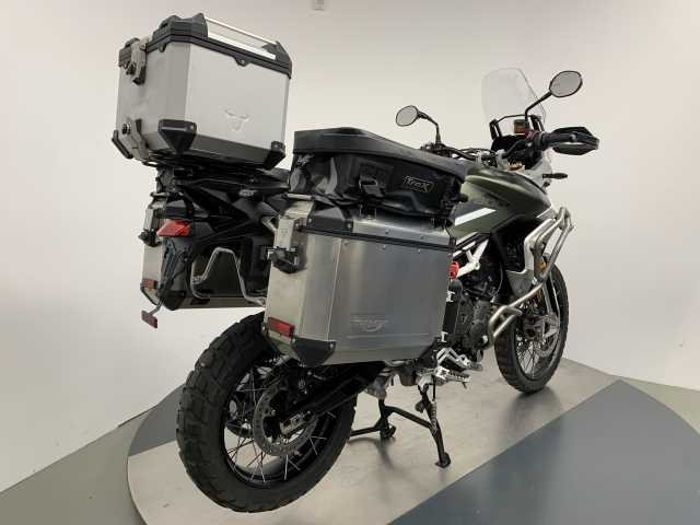 Ausgestattet unter anderem mit komplettem Triumph Alu-Kofferset und SW-Motech Topcase, beheizten Sitzen und Griffen, Quickshifter, Sturzbügel, Hauptständer und Zusatzscheinwerfer.
