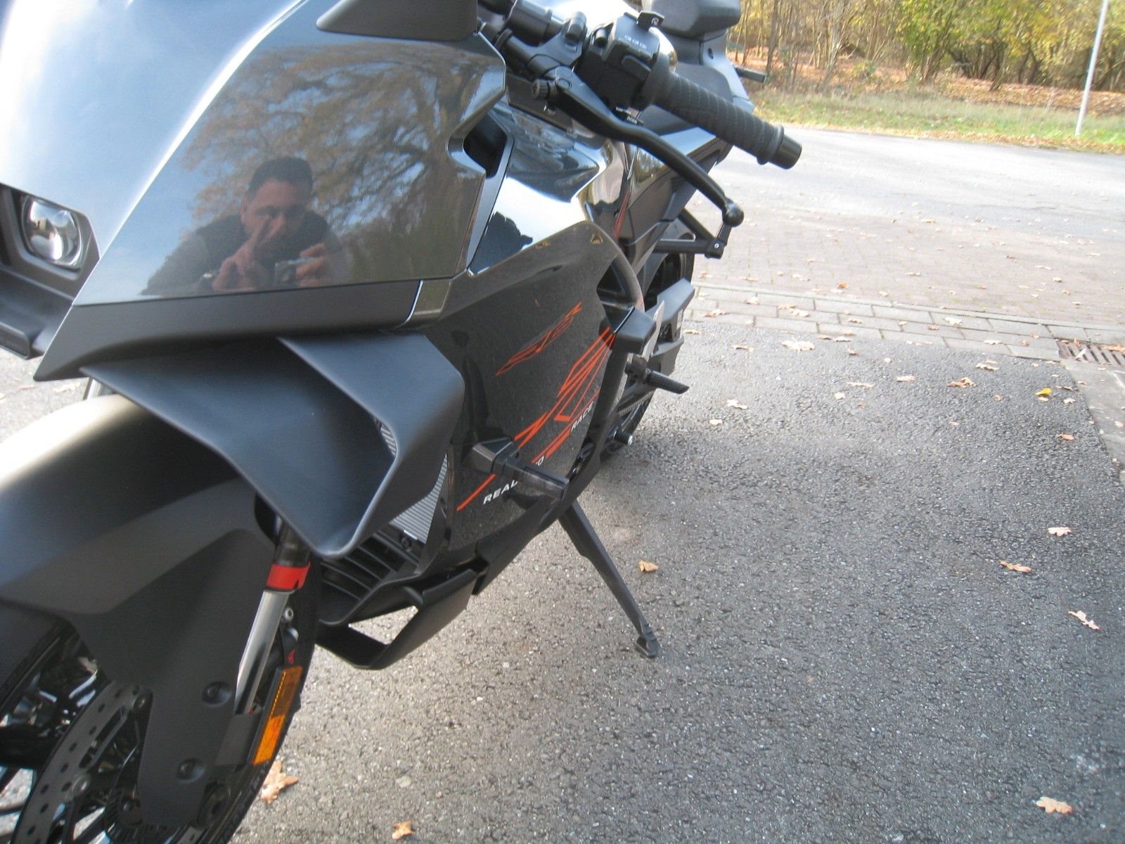 - Technik: Kurven-ABS (inkl. Supermoto-Modus), schräglagenabhängige Traktionskontrolle und verschiedene Fahrmodi (Street, Rain, Sport).