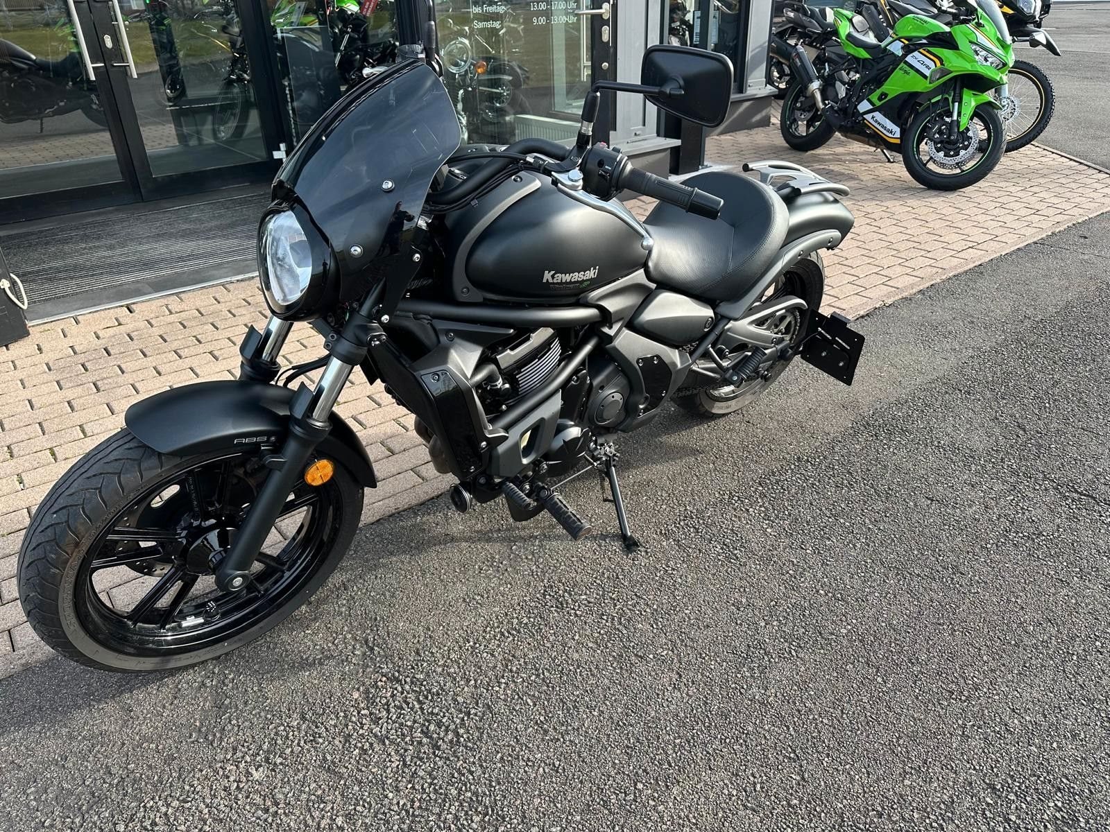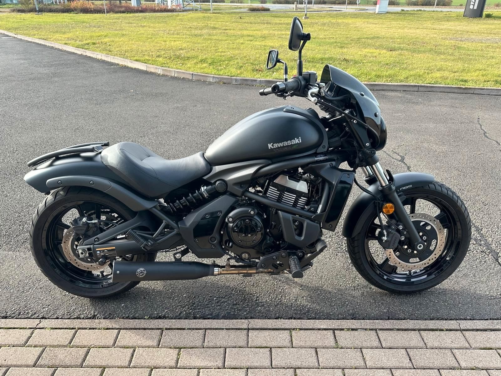 Kawasaki Vulcan S. Ein kleiner karftvoller Crusier mit getönter performance Scheibe , Falcon Auspuff, kleine Blinker vorne und hinten, seitlicher Kennzeichenträger. Die Vulcan S ist kein klassischer Cruiser und hat mit ihrem Parallel-Twin und einem einzigartigen