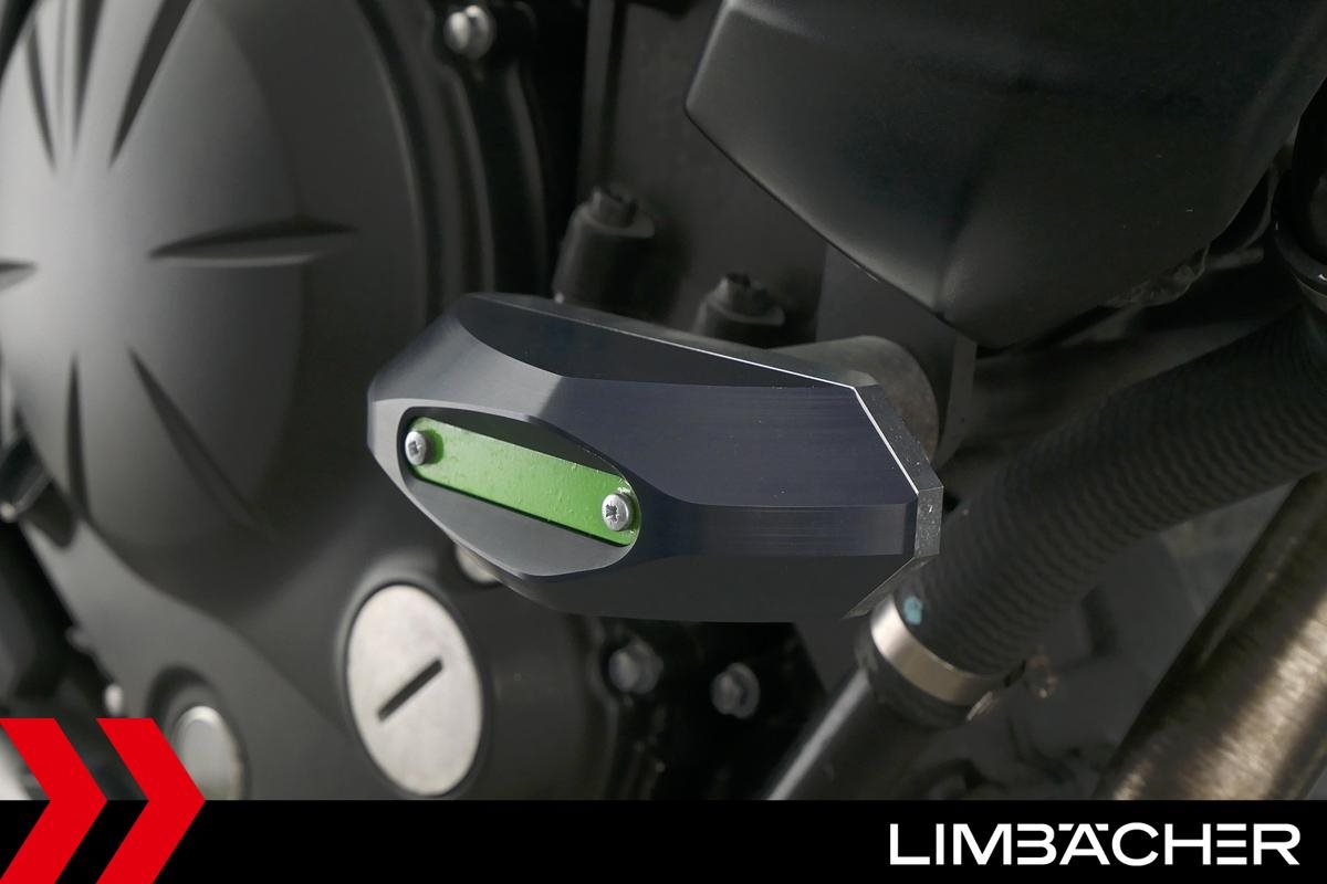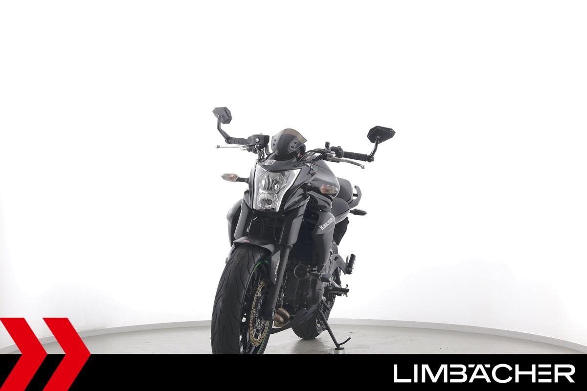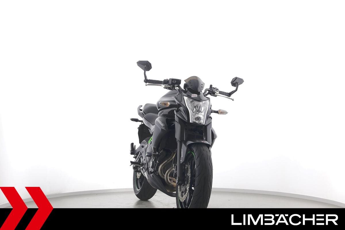 Eine Kawasaki ER-6n in sehr gepflegtem Zustand u.a. mit Lenkerendenspiegeln und Sturzpads.