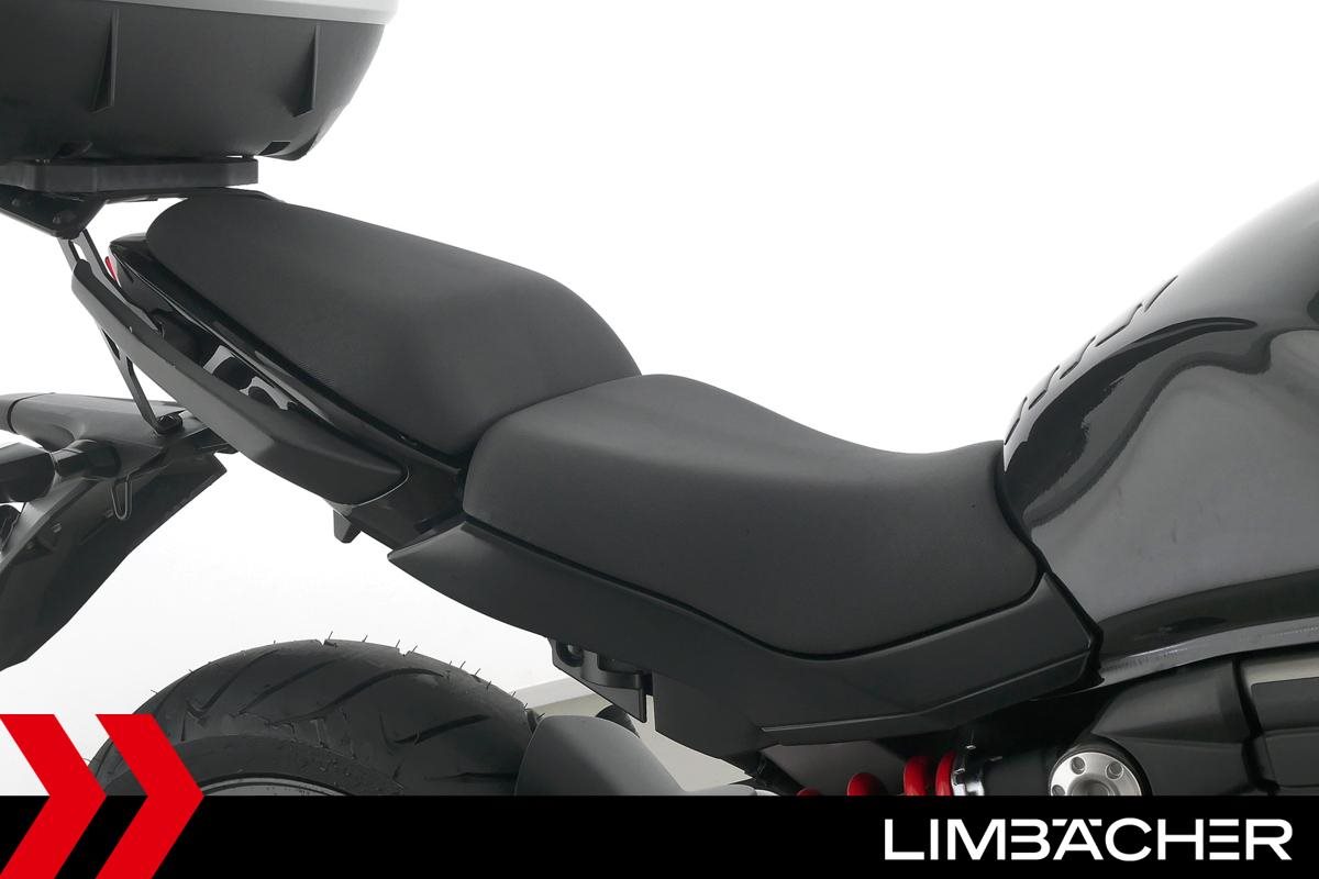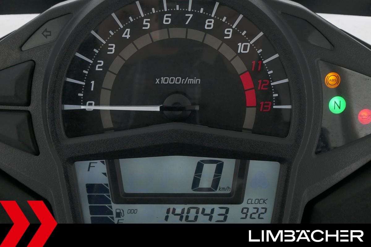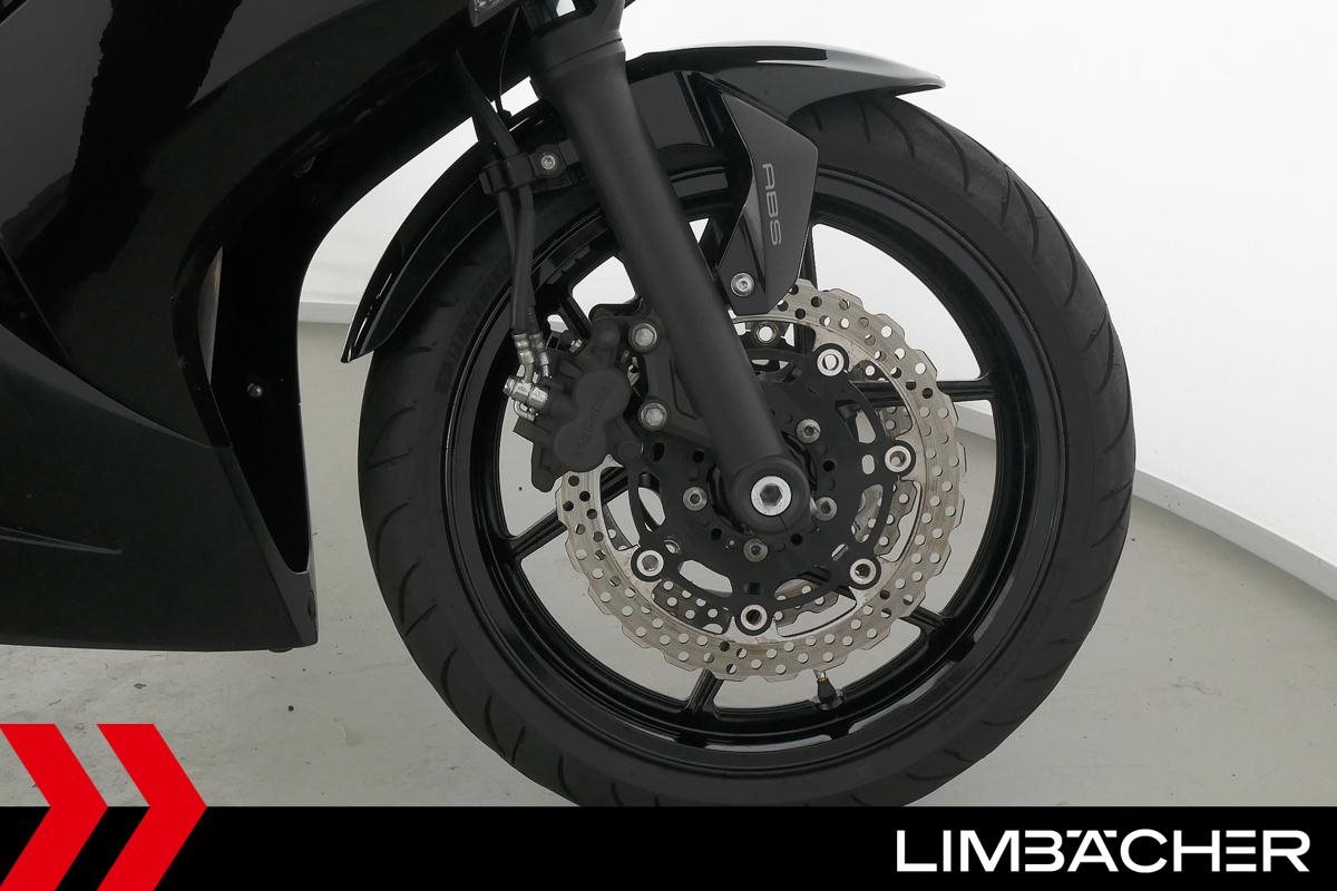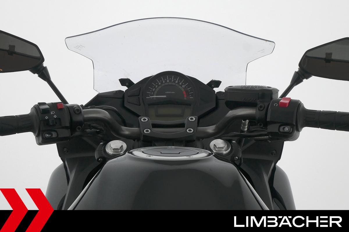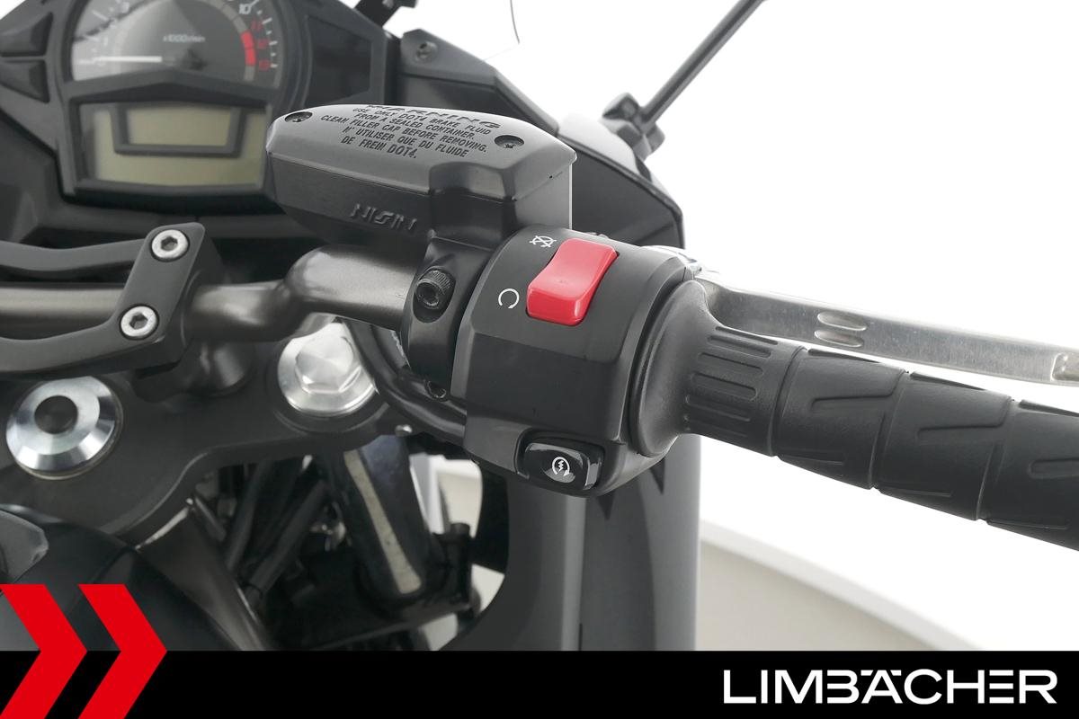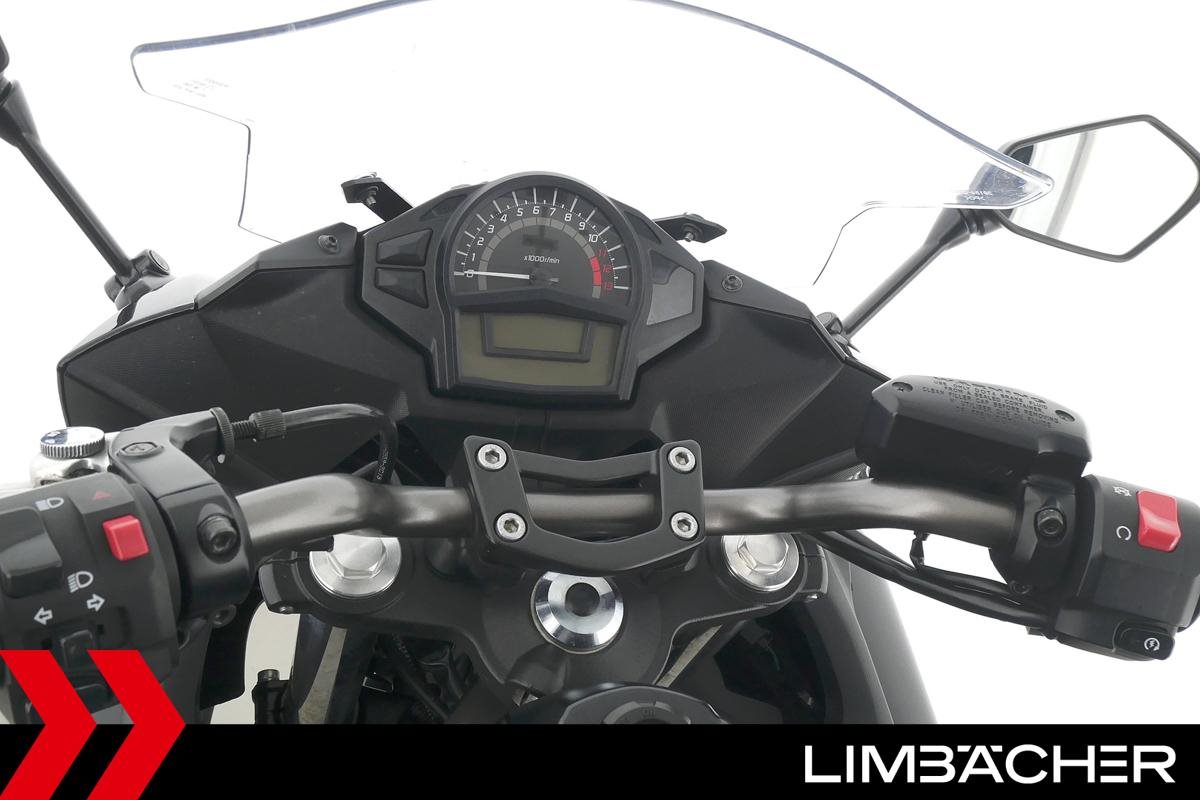 Eine scheckheftgepflegte Kawasaki ER-6f aus zweiter Hand in gepflegtem Zustand u.a. mit grossem Givi-Topcase und Montageheber-Aufnahmen.