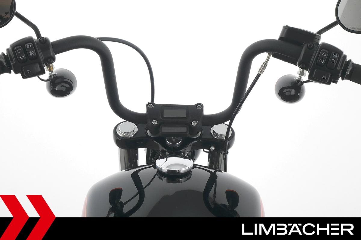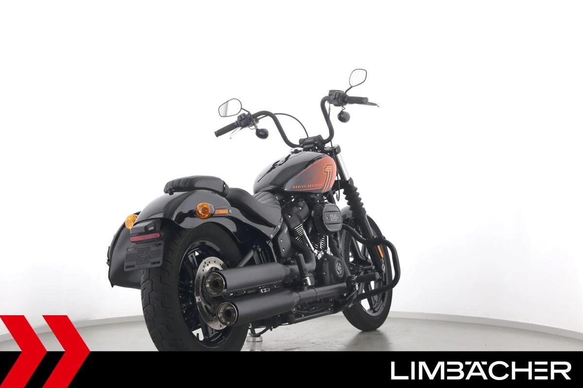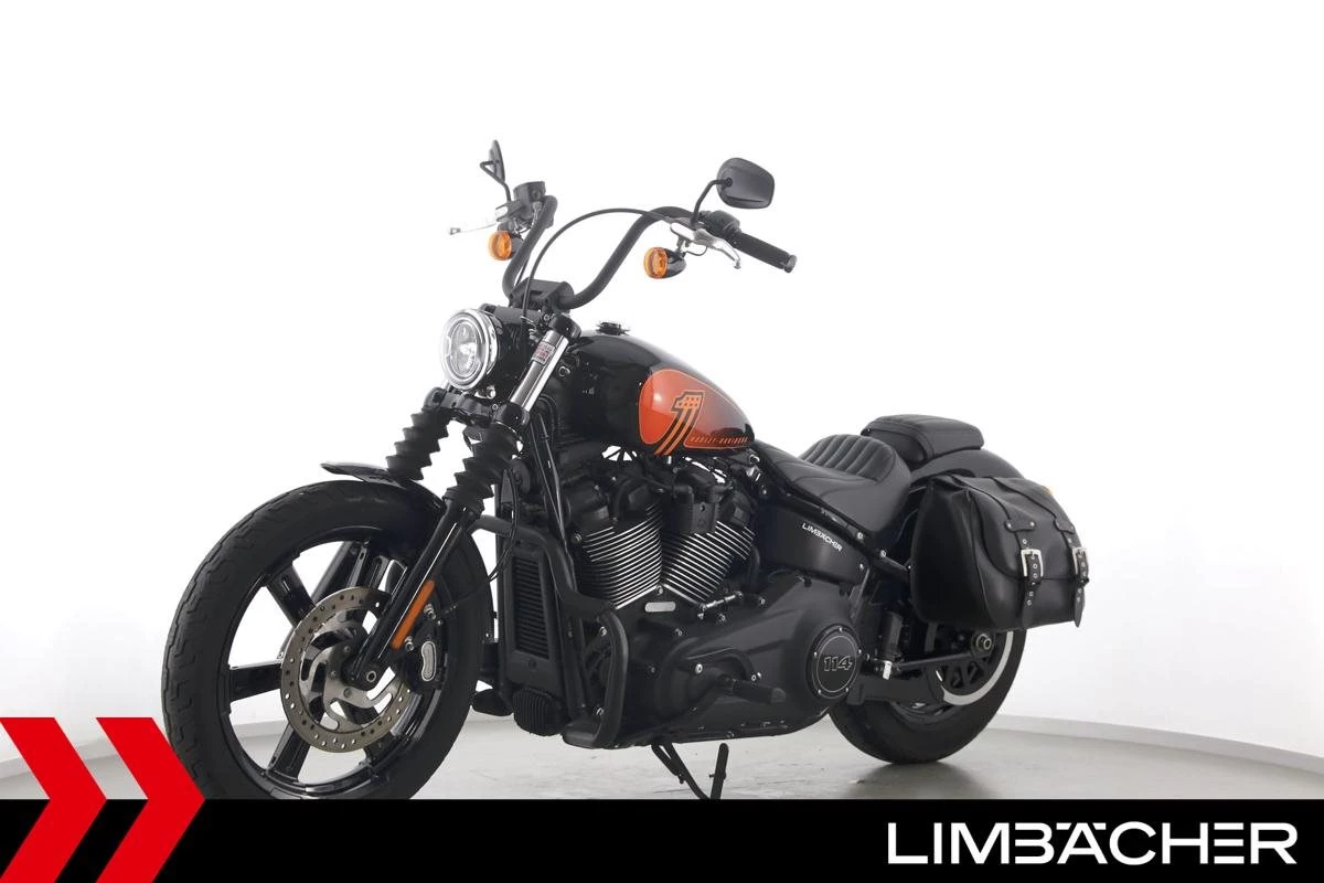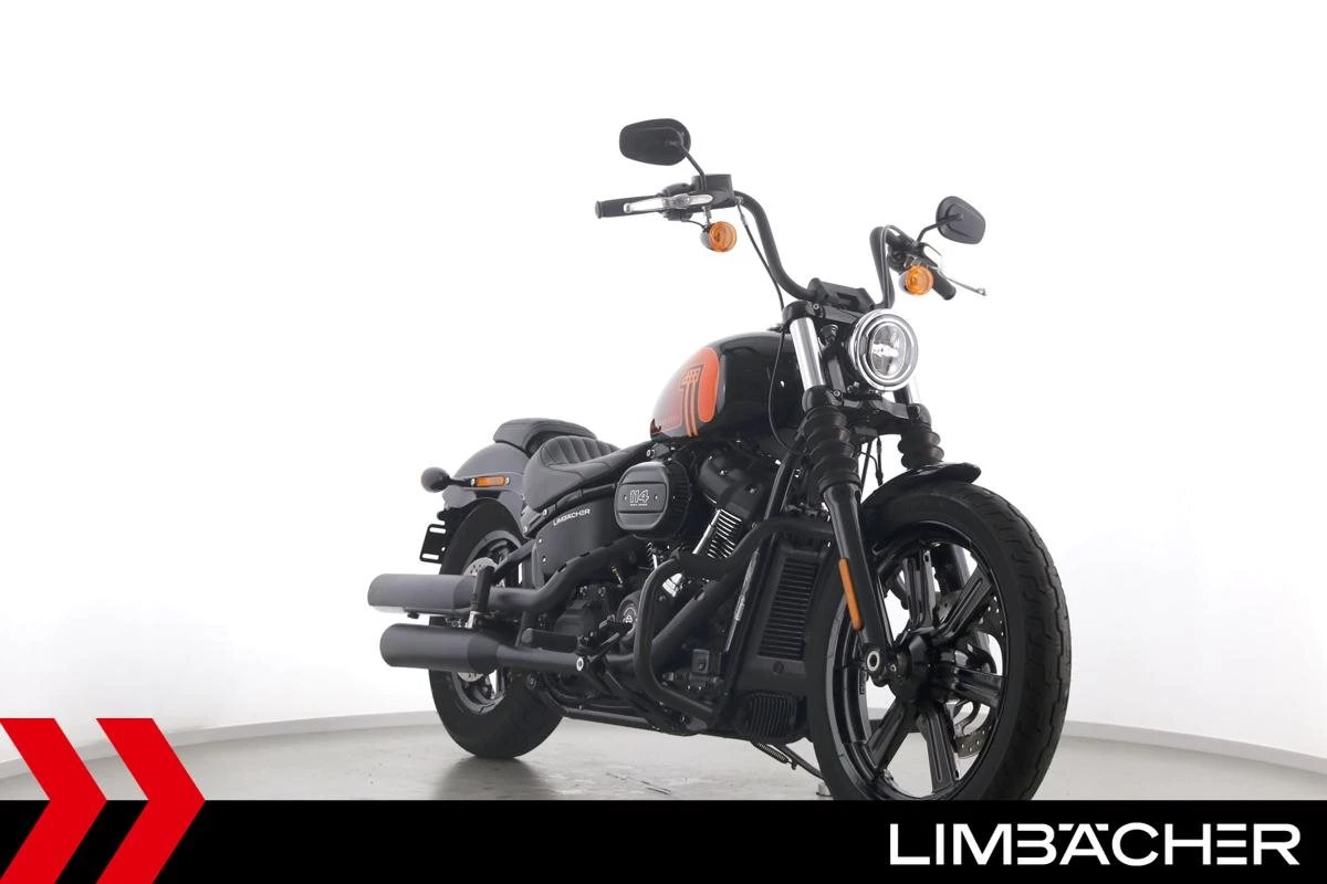 Eine Harley-Davidson Softail Street Bob 114 FXBBS in sehr gepflegtem Zustand u.a. mit Sturzbügel sowie seitlicher Leder-Bobbertasche.