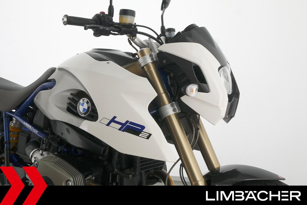 Eine BMW HP2 Megamoto in sehr gepflegtem Zustand u.a. mit Akrapovic-Endschalldämpfer und Öhlins-Federbein.